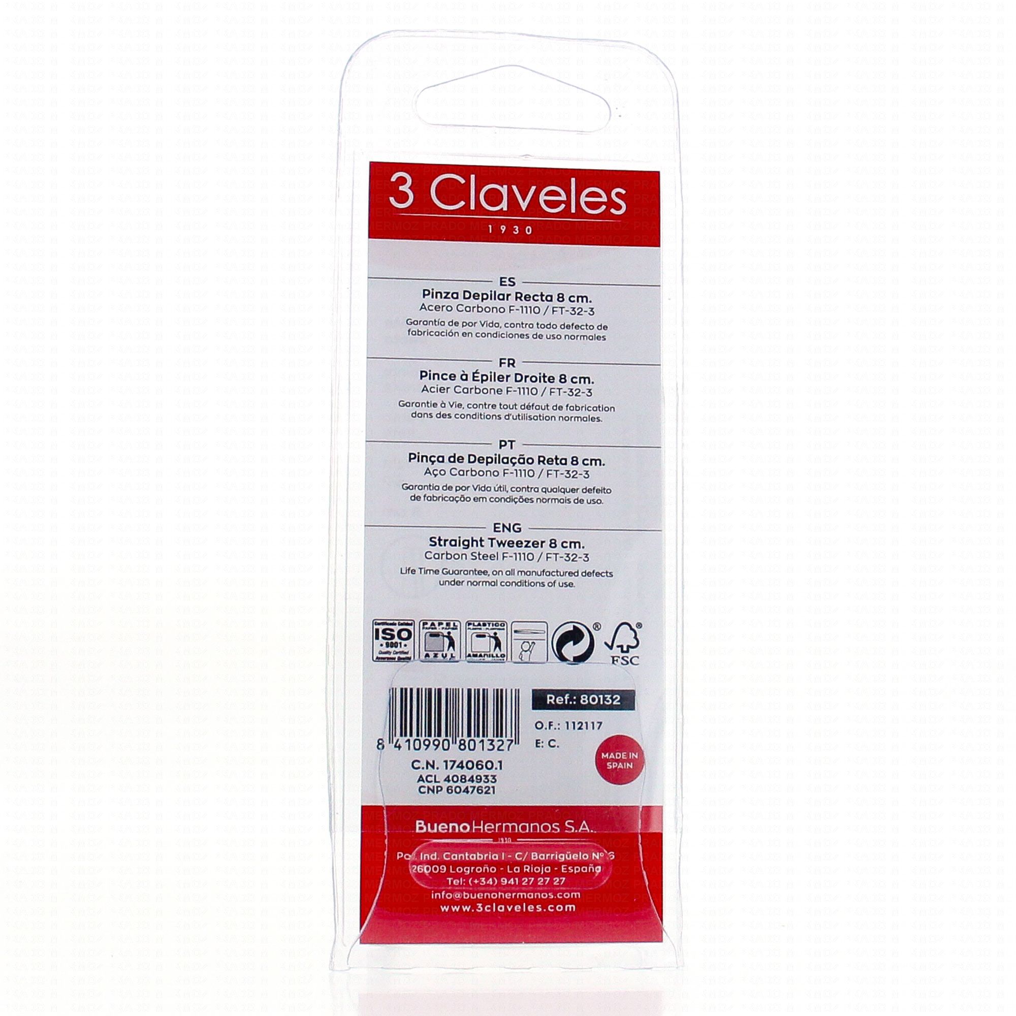 Indispensable pour une épilation précise. Les mors droits permettent d'épiler les poils courts ou fins sans les casser. Une tradition de plus de 70 ans dans la fabrication de coutellerie fine, ciseaux, pinces et articles de manucure garantit la qualité des produits 3 Claveles.