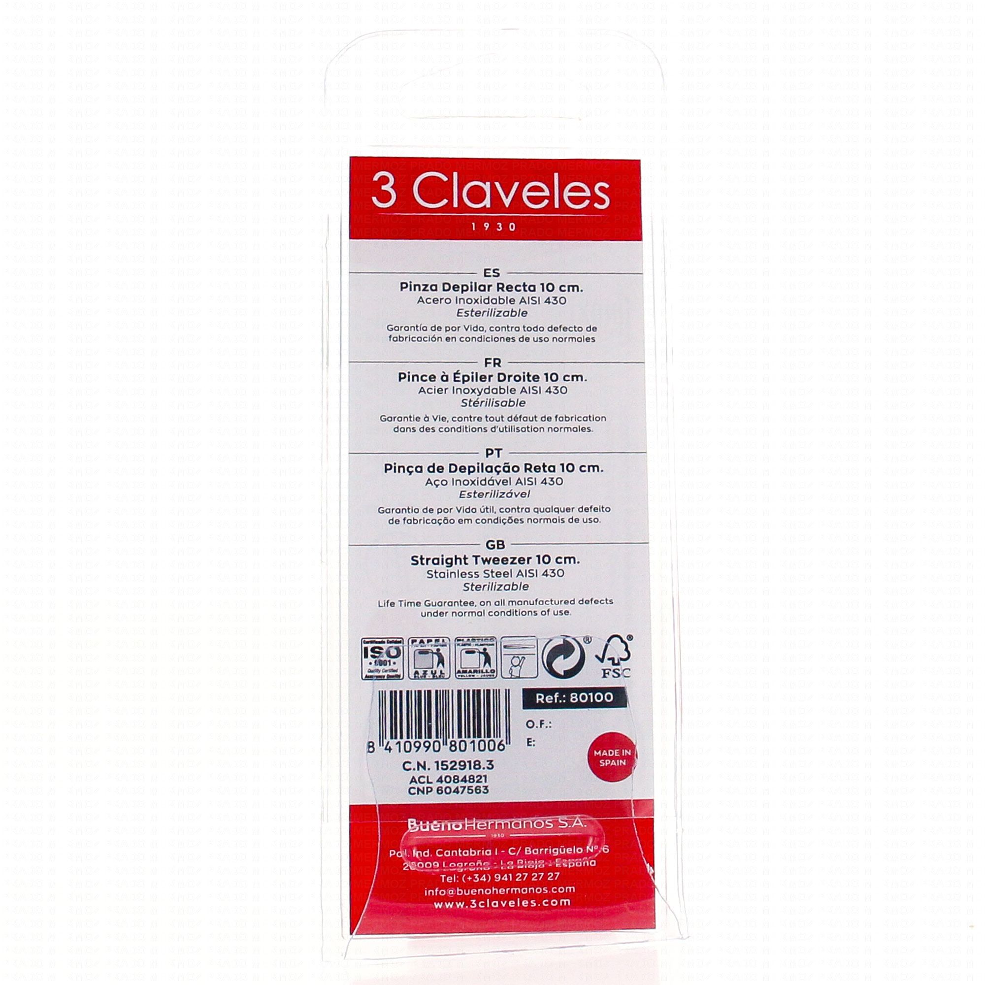 Indispensable pour une épilation précise. Les mors droits permettent d'épiler les poils courts ou fins sans les casser. Une tradition de plus de 70 ans dans la fabrication de coutellerie fine, ciseaux, pinces et articles de manucure garantit la qualité des produits 3 Claveles.