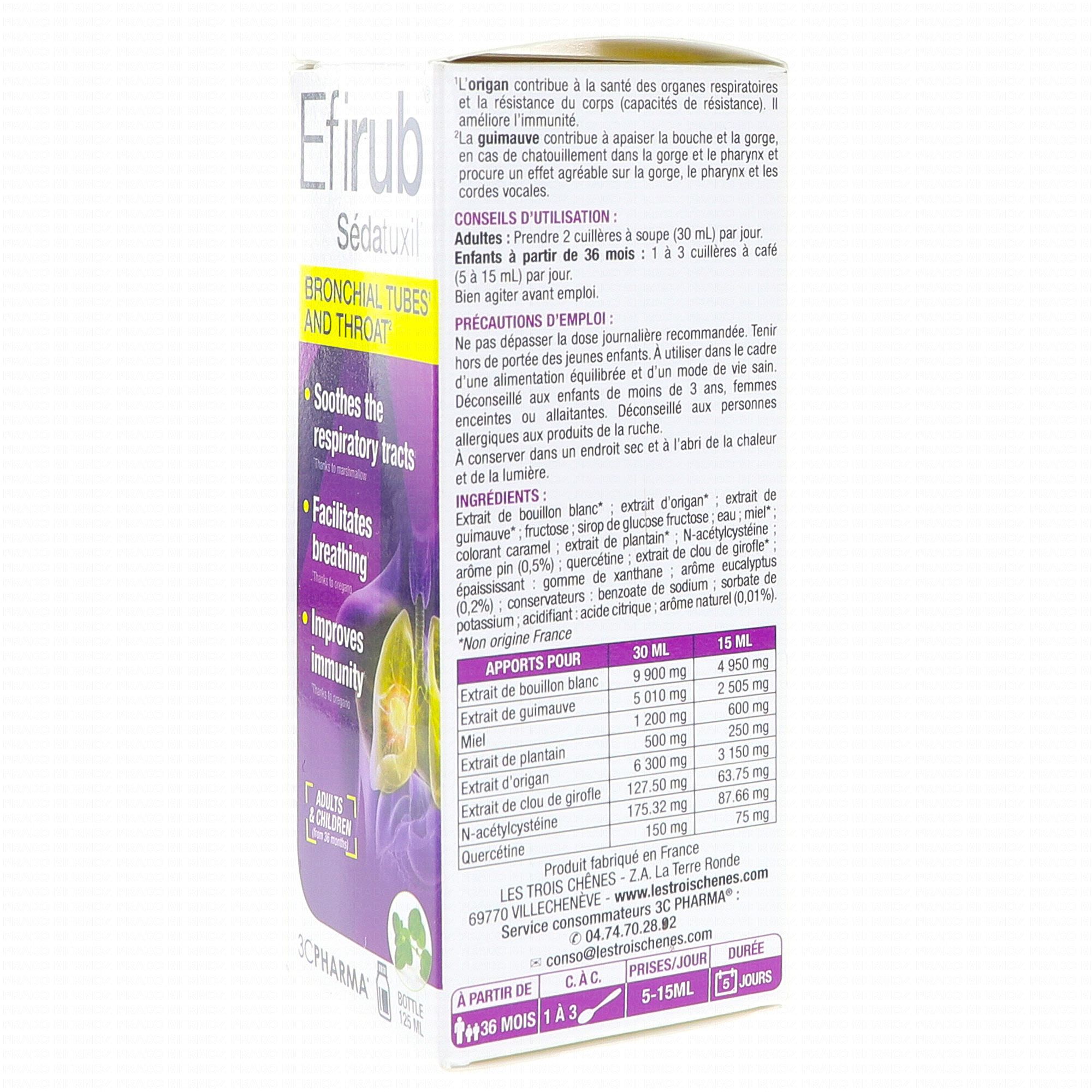 3 C PHARMA efirub sirop 125ml contient les éléments suivants :