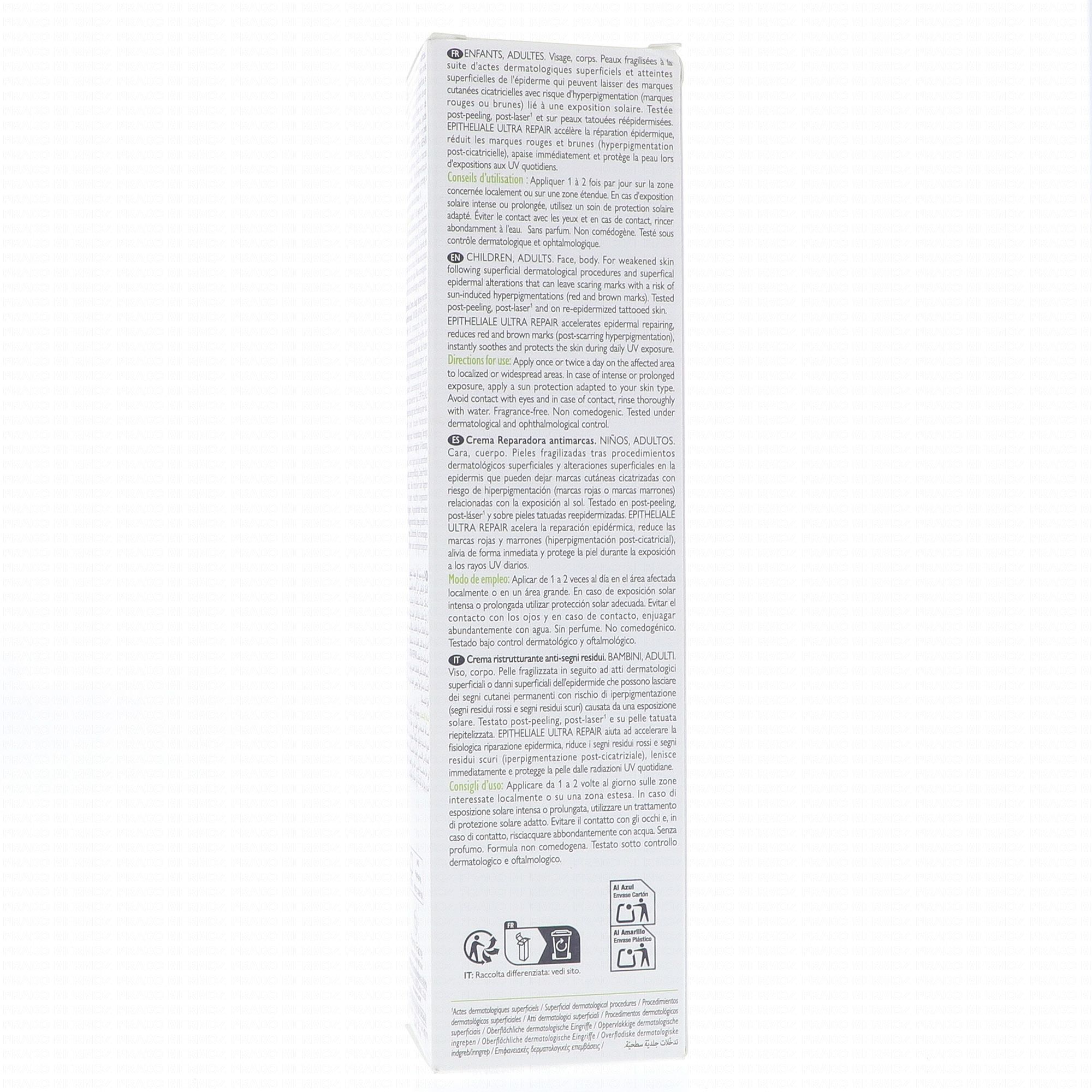 Crème réparatrice. Anti-marque. Avec protection solaire SPF50+. Soin du corps et visage. Enfants et adultes. Pour les marques rouges et brunes. Peaux fragilisés