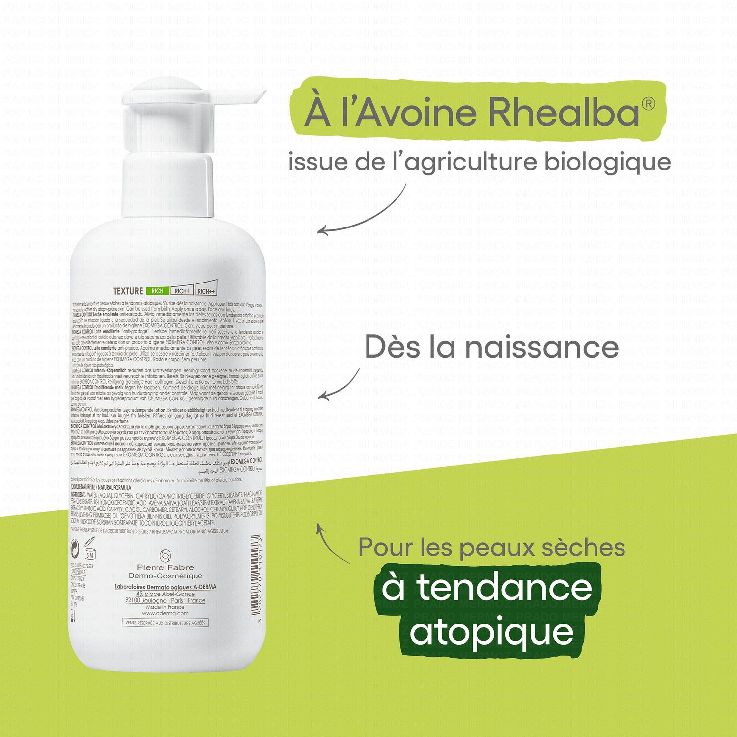 A-DERMA Exomega Control - lait émollient flacon pompe 400ml #skincare