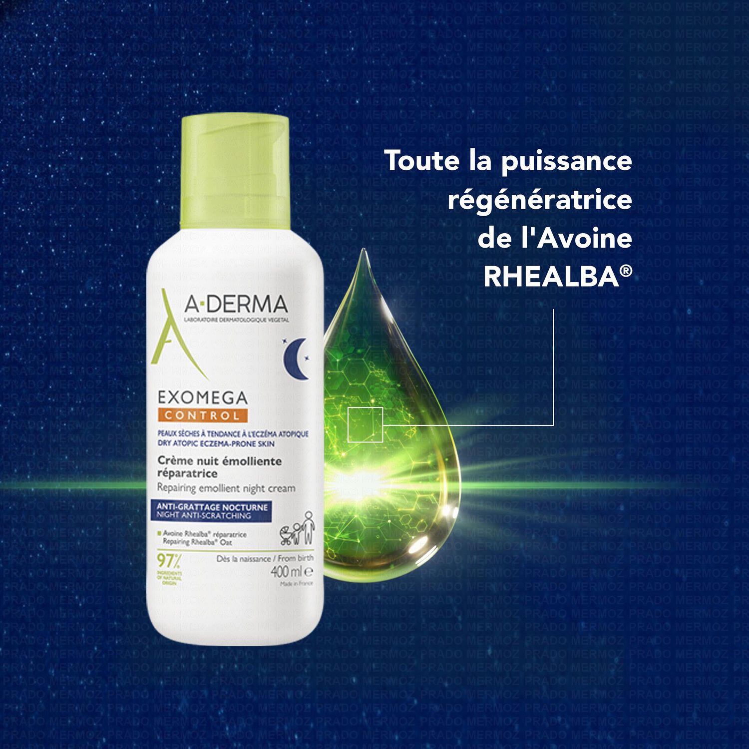 La crème nuit émolliente réparatrice EXOMEGA CONTROL met les grattages des peaux sèches sujettes à l'eczéma atopique en sommeil et permet de retrouver un sommeil réparateur grâce à un nouveau duo d'actif naturel puissant. Le RHEALBA apaisant & l'HELICHRYSE ciblant les molécules responsables du grattage pour 2X moins de réveils nocturnes*.