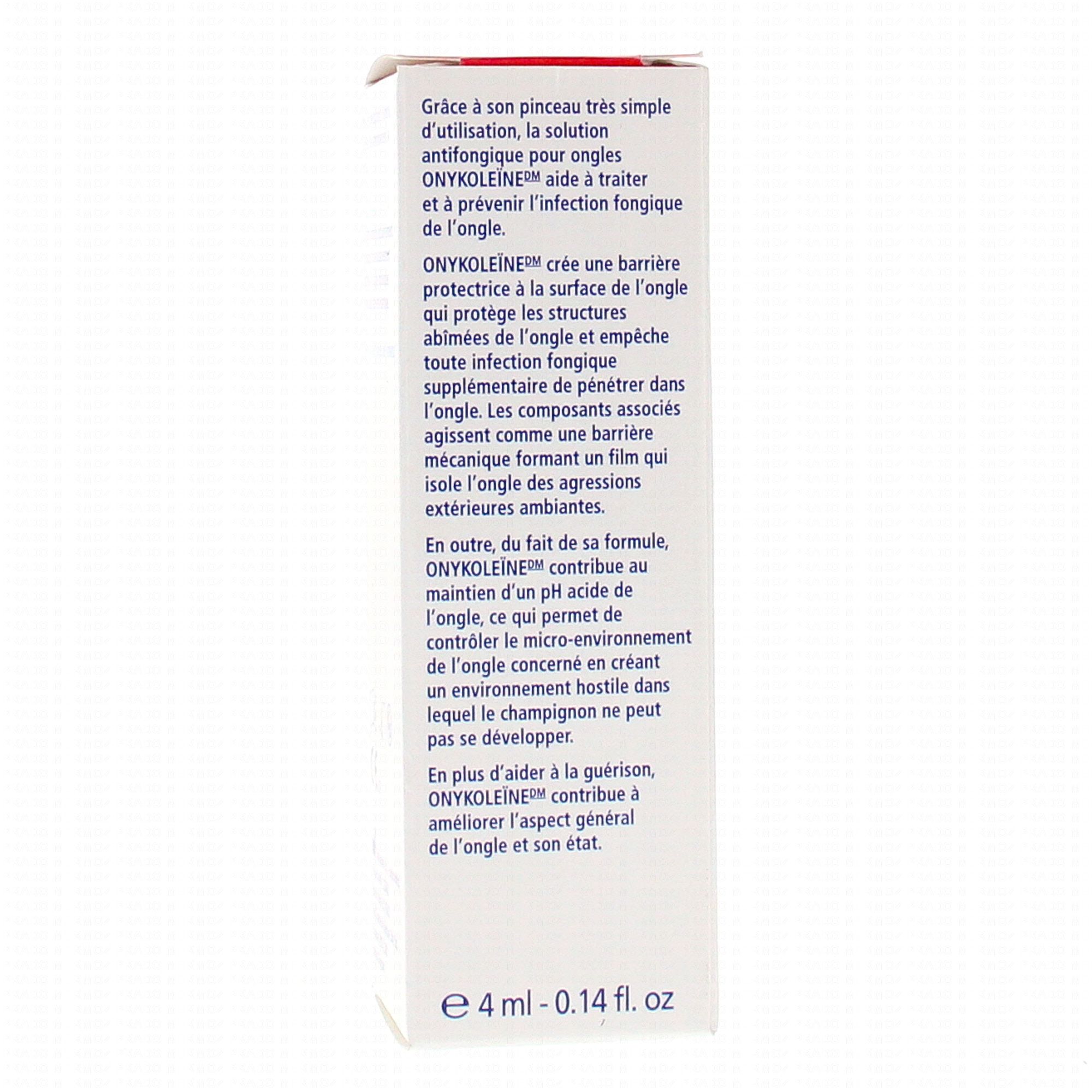 Onykoleïne est une solution antifongique pour ongles mycosés. Sa solution protège la surface de l'ongle en créant une barrière protectrice protectrice. Elle améliore l'esthétique de l'ongle, traite l'ongle mycosés et prévient la réinfection de l'ongle. Les composants de cette solution agissent comme une barrière protectrice qui isole l'ongle des agressions extérieures. Elle maintient le pH acide de l'ongle et empêche les champignons de se développer. Son pinceau est simple d'utilisation et permet un usage facilité.