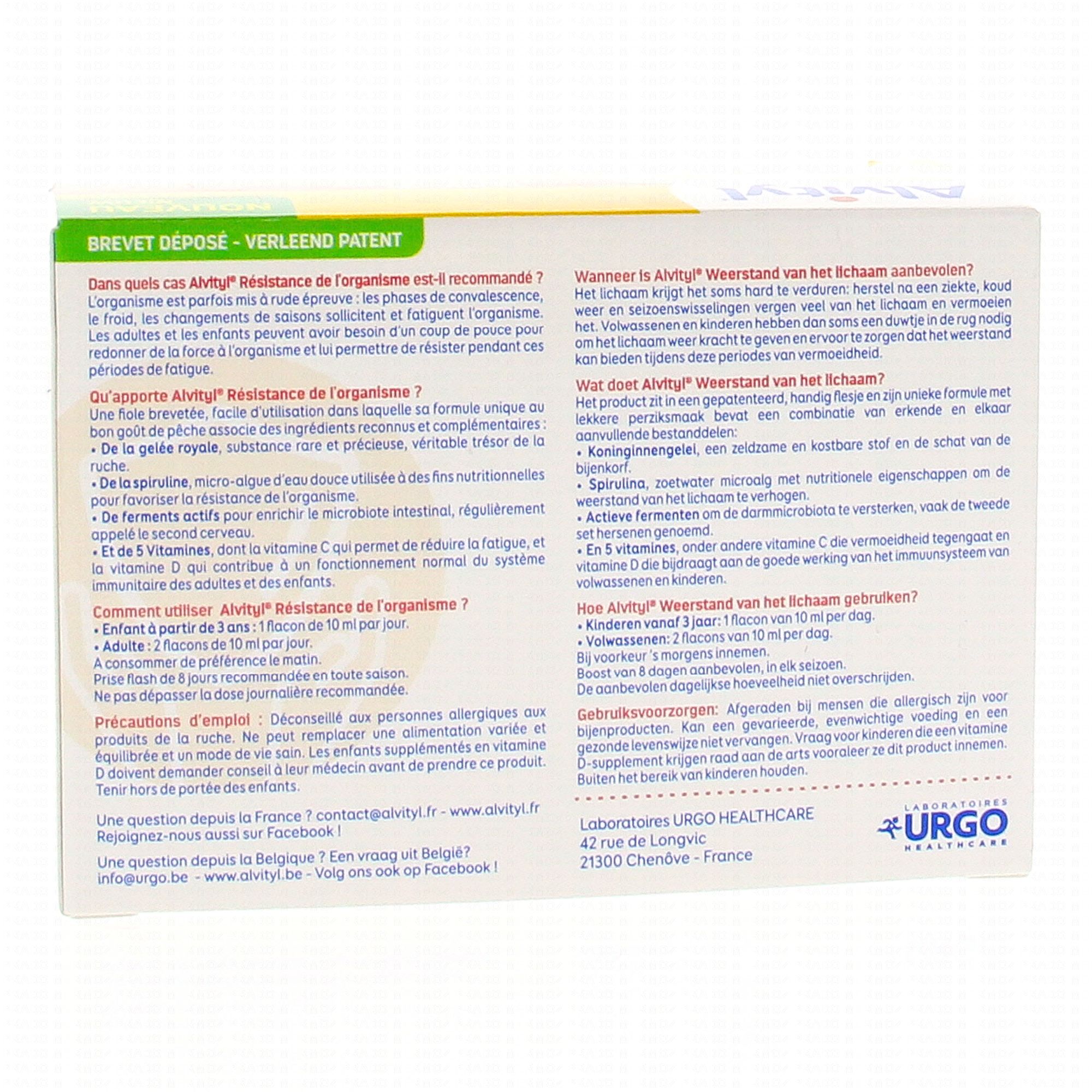 ALVITYL Résistance de l'organisme 8 flacons contient les éléments suivants :