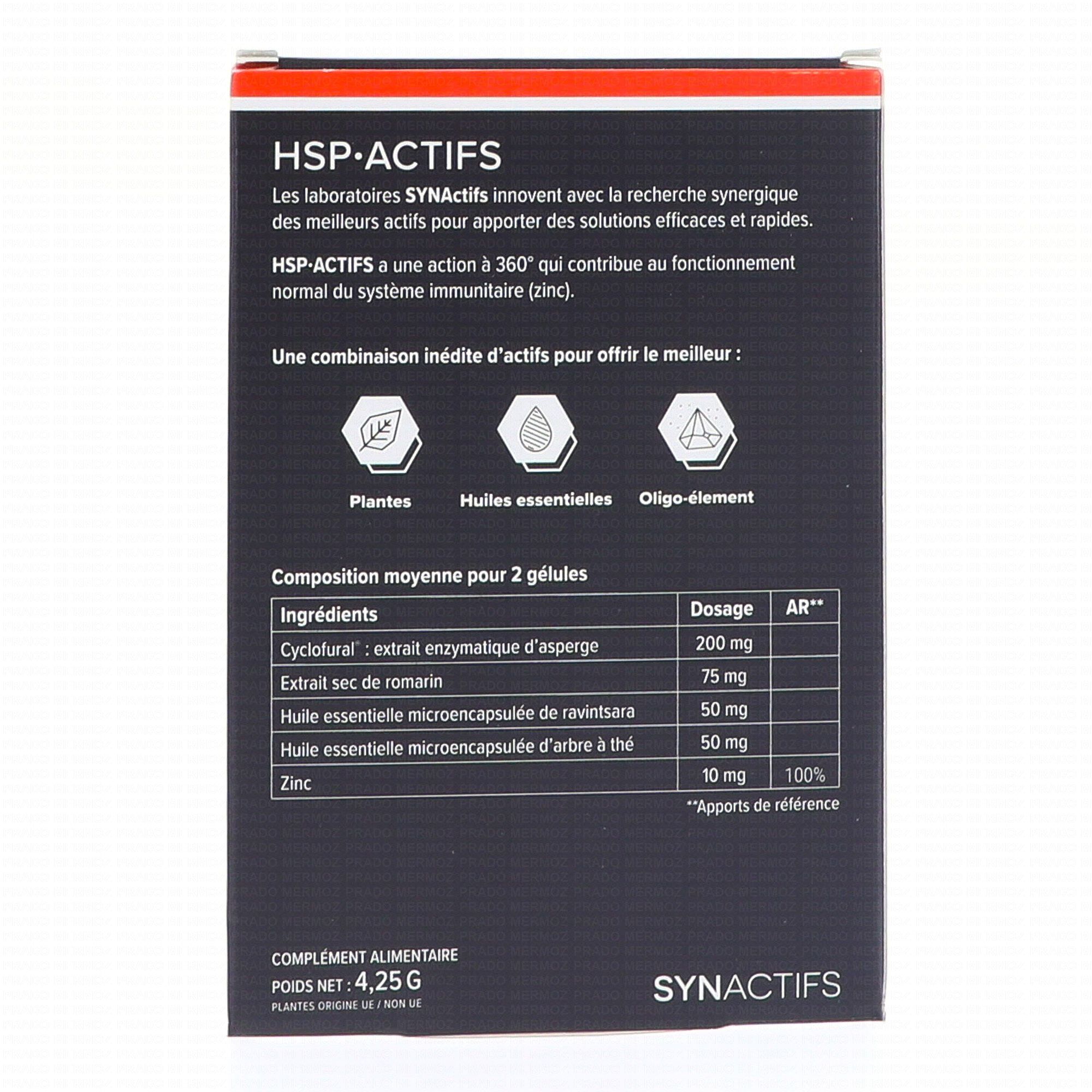SYNACTIFS HSP Actifs Immunité X10 gélules contient les éléments suivants :