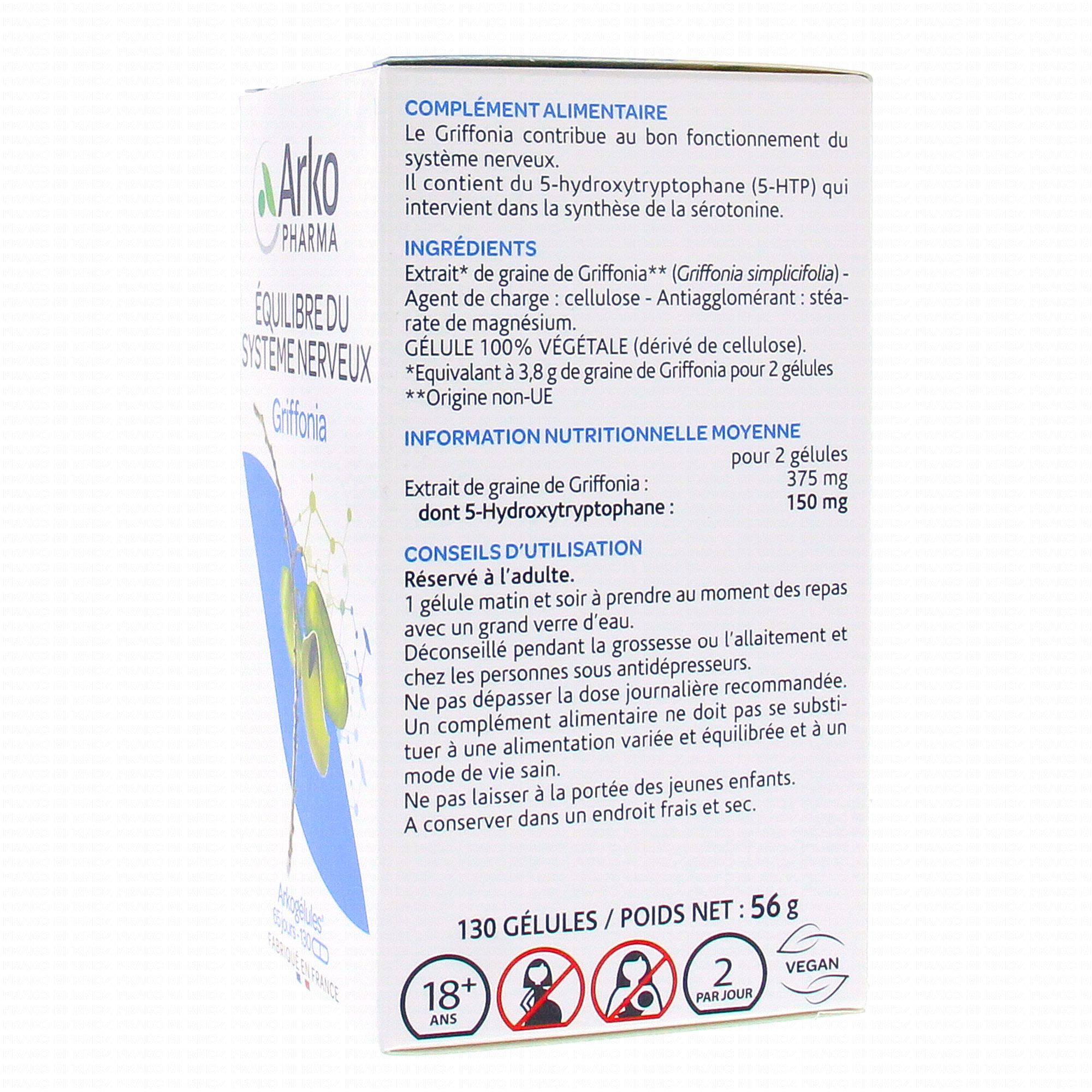 ARKOPHARMA arkogélules griffonia 130 gélules contient les éléments suivants :