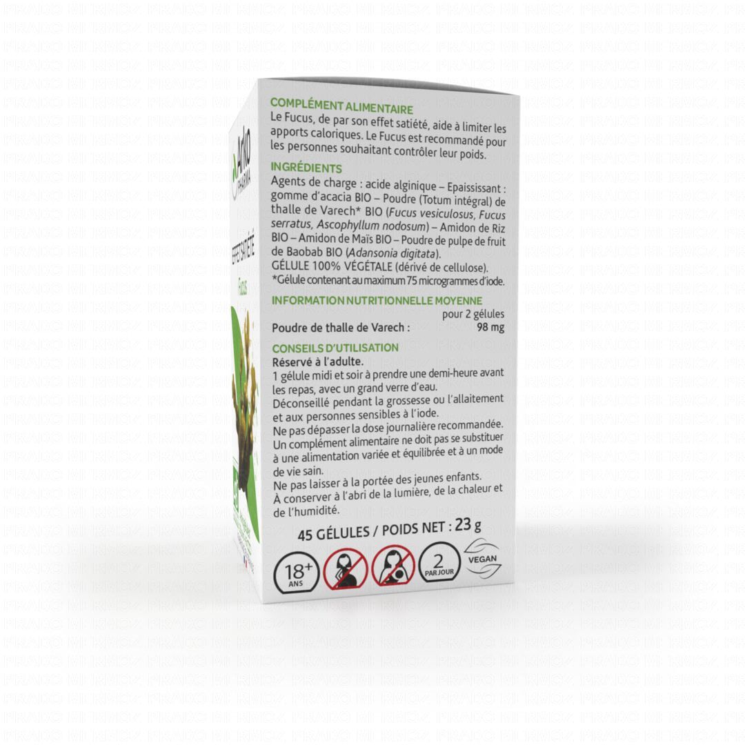 ARKOPHARMA Fucus bio 45 gélules est un complément alimentaire qui joue un rôle dans l'effet de satiété grâce à la présence de Fucus.
