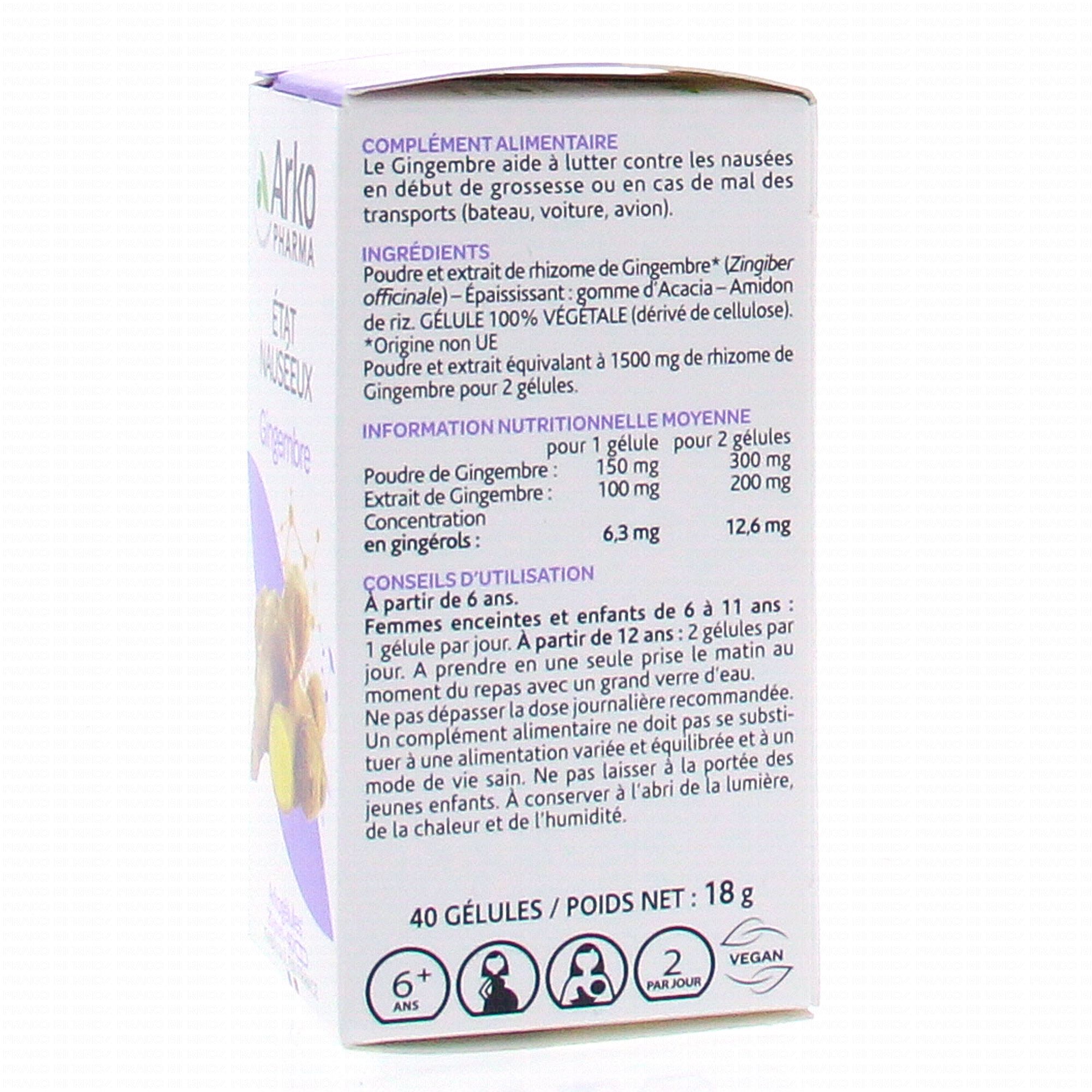 ARKOPHARMA Arkogélules - Gingembre 40 gélules contient les éléments suivants :