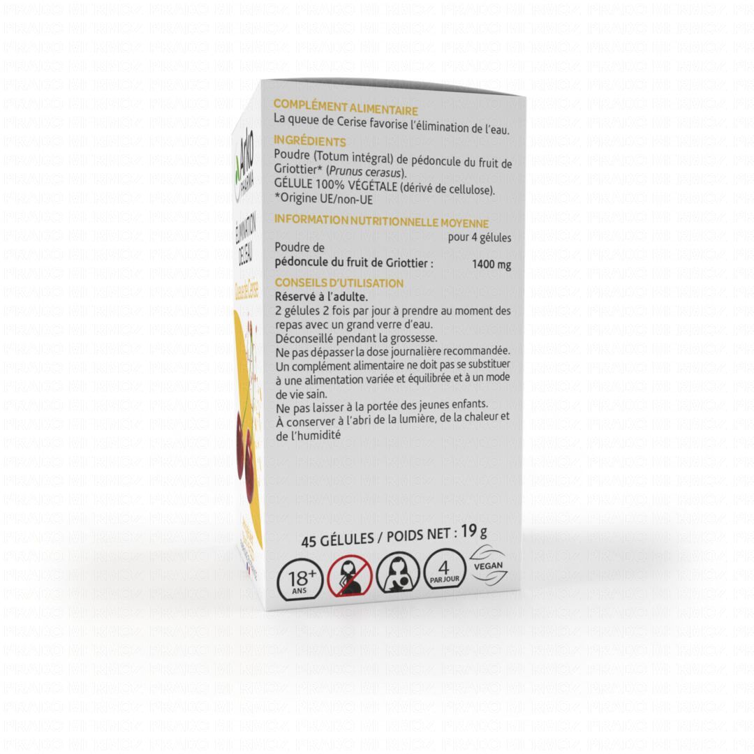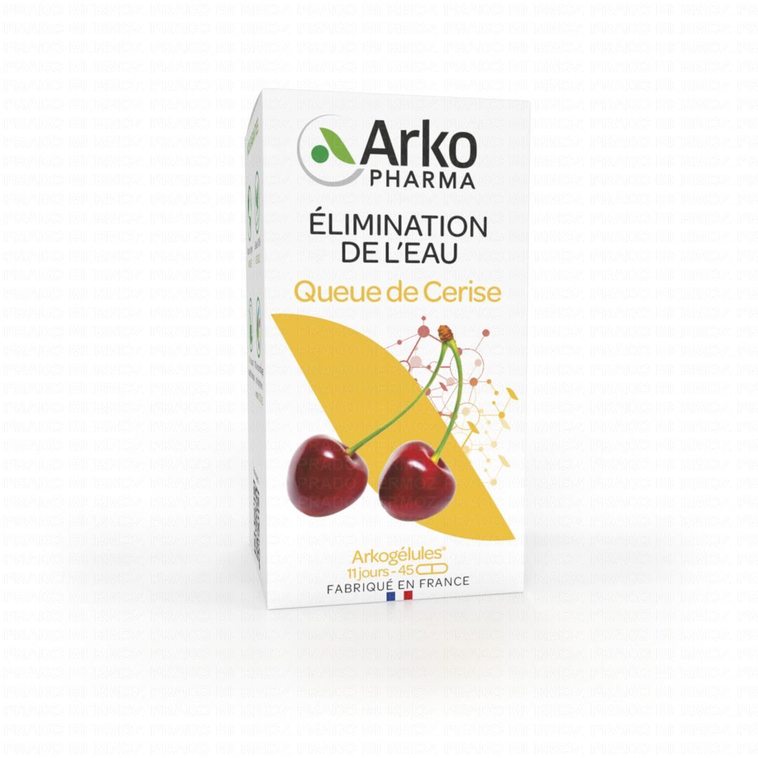 ARKOPHARMA Queue de cerise 45 gélules est un complément alimentaire contenant de l'extrait de Queue de cerise traditionnellement utilisé dans les fonctions d'élimination de l'organisme.