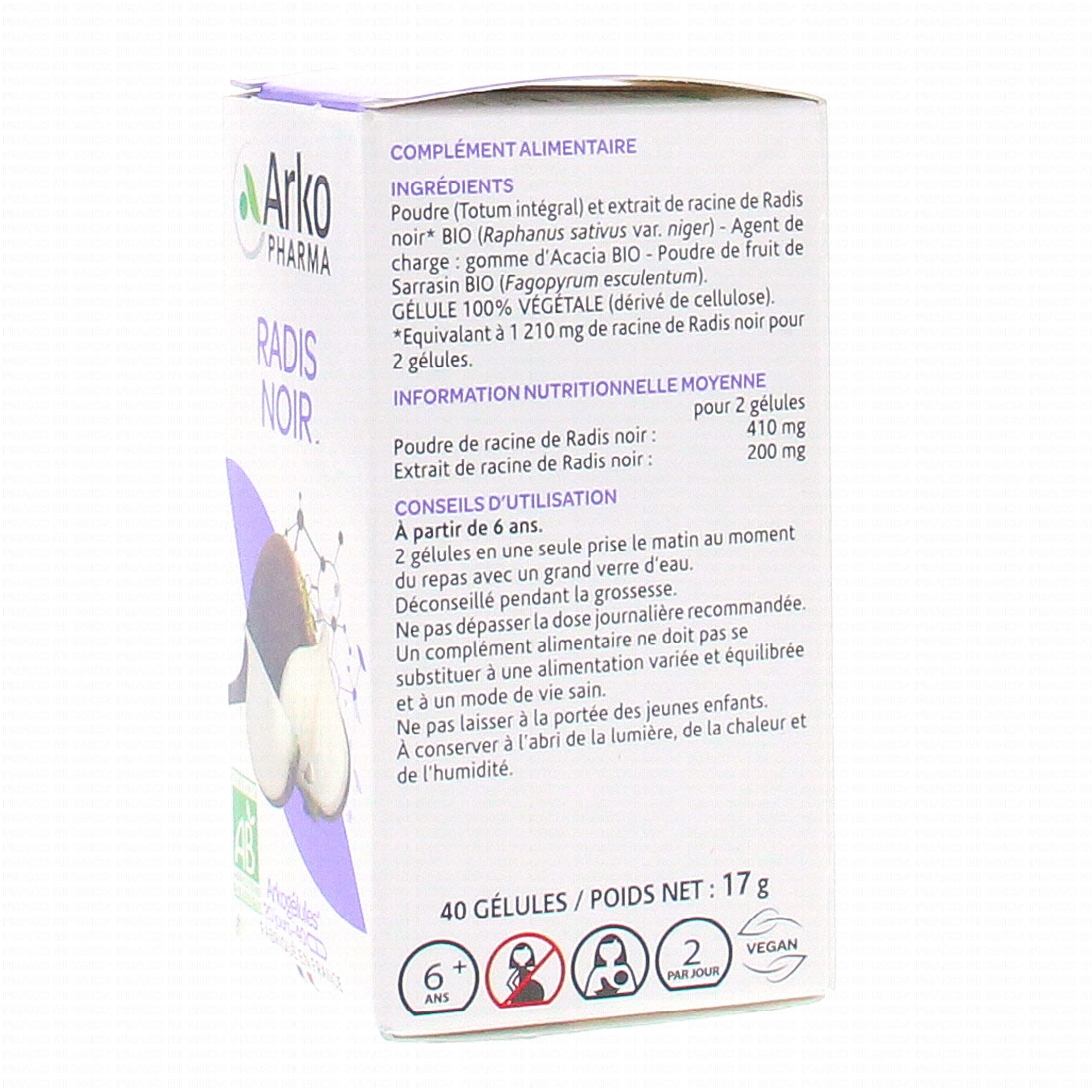 ARKOPHARMA Arkogélules Radis noir 40 gélules contient les éléments suivants :