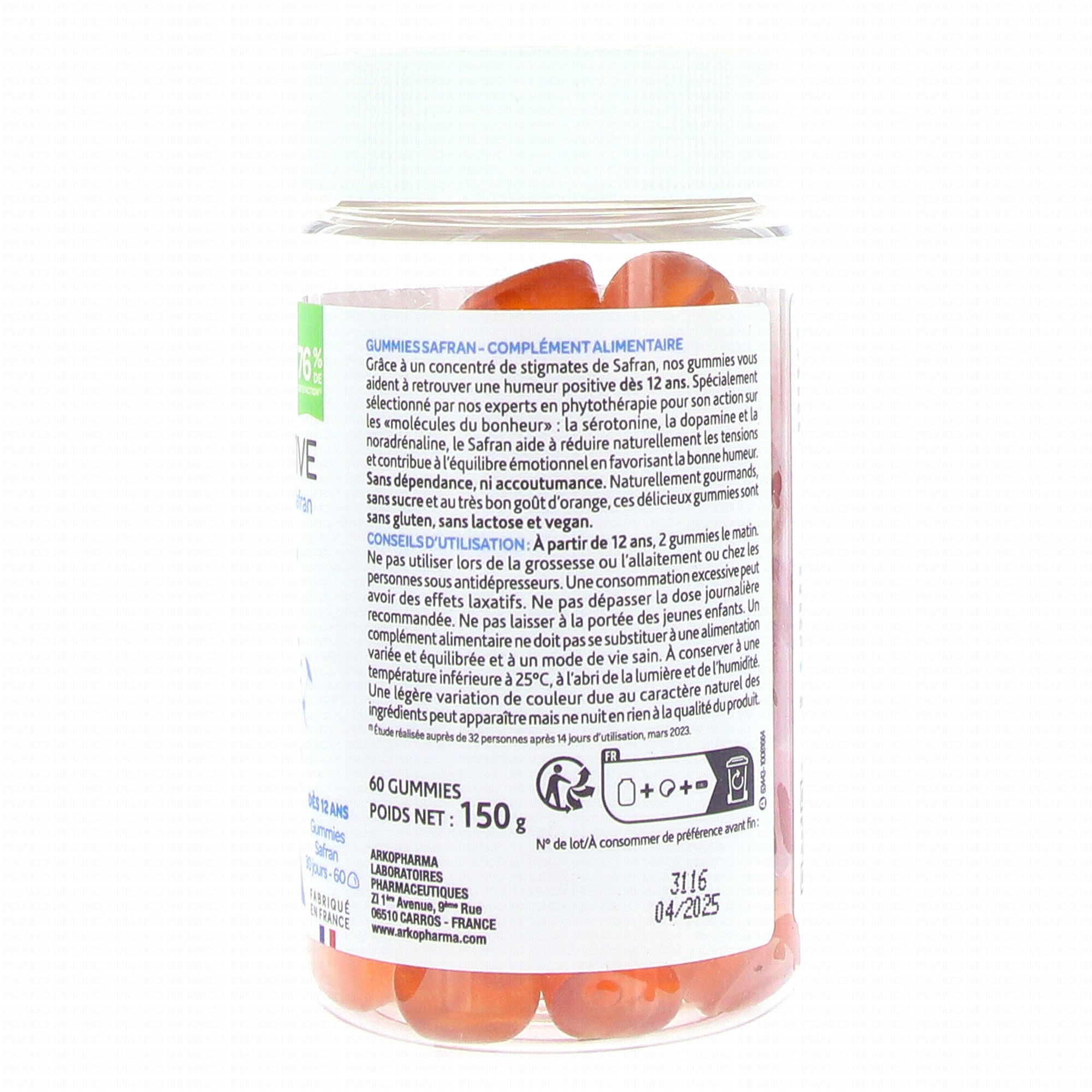 ARKOPHARMA Humeur Positive 60 gummies est un complément alimentaire qui contribue au bon fonctionnement de la santé mentale grâce à la présence de safran.