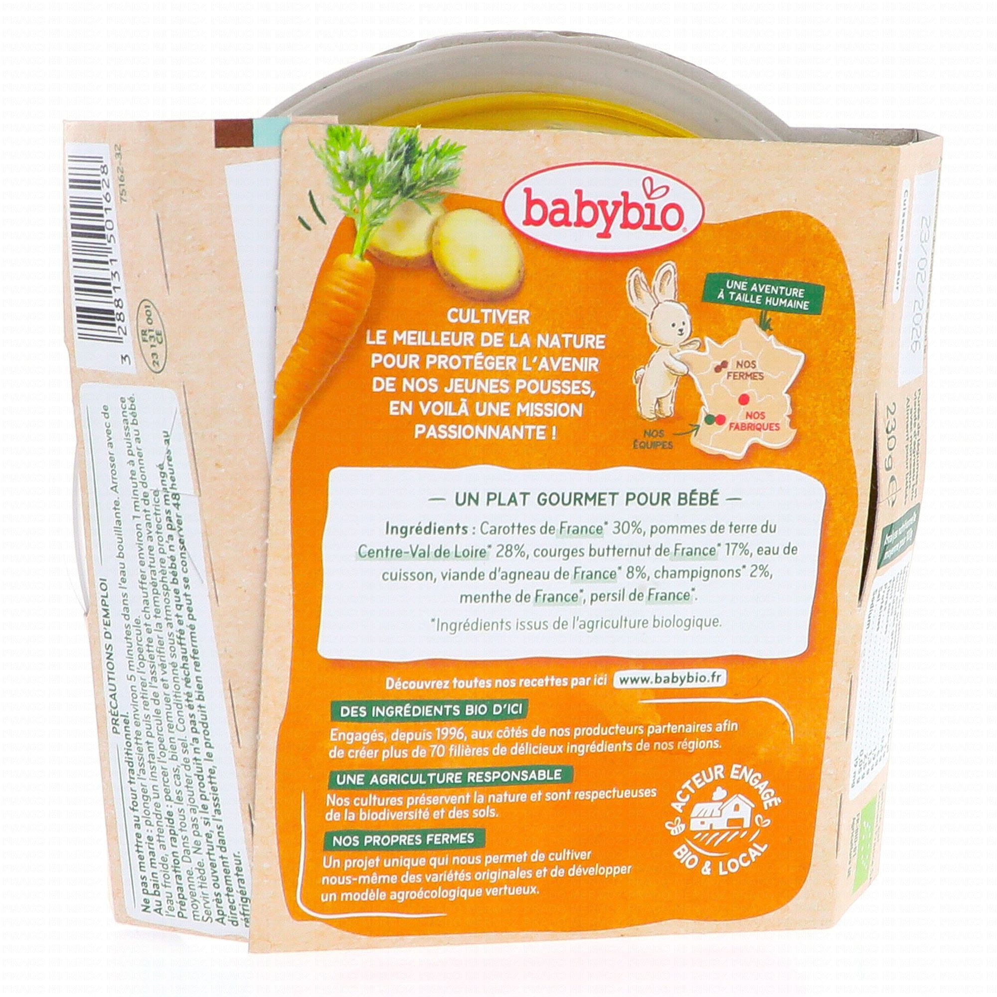 BABYBIO Repas du Midi - Petit plat Navarin de petits légumes agneau de nos régions 230g dès 12 mois - Illustration n°2