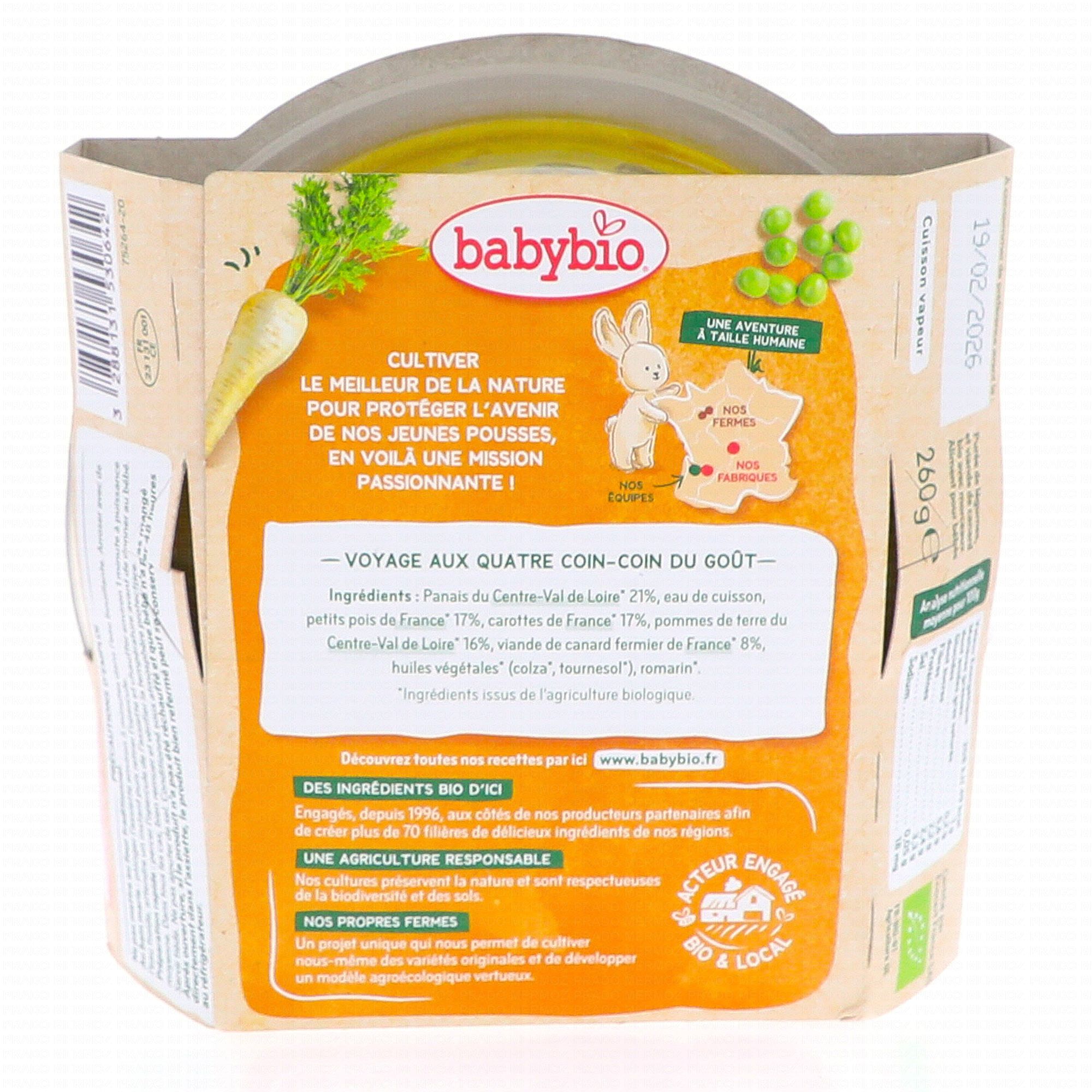 BABYBIO Repas du Midi - Petit plat Panais, petits pois, canard fermier du Poitou dès 15 mois 260g #skincare