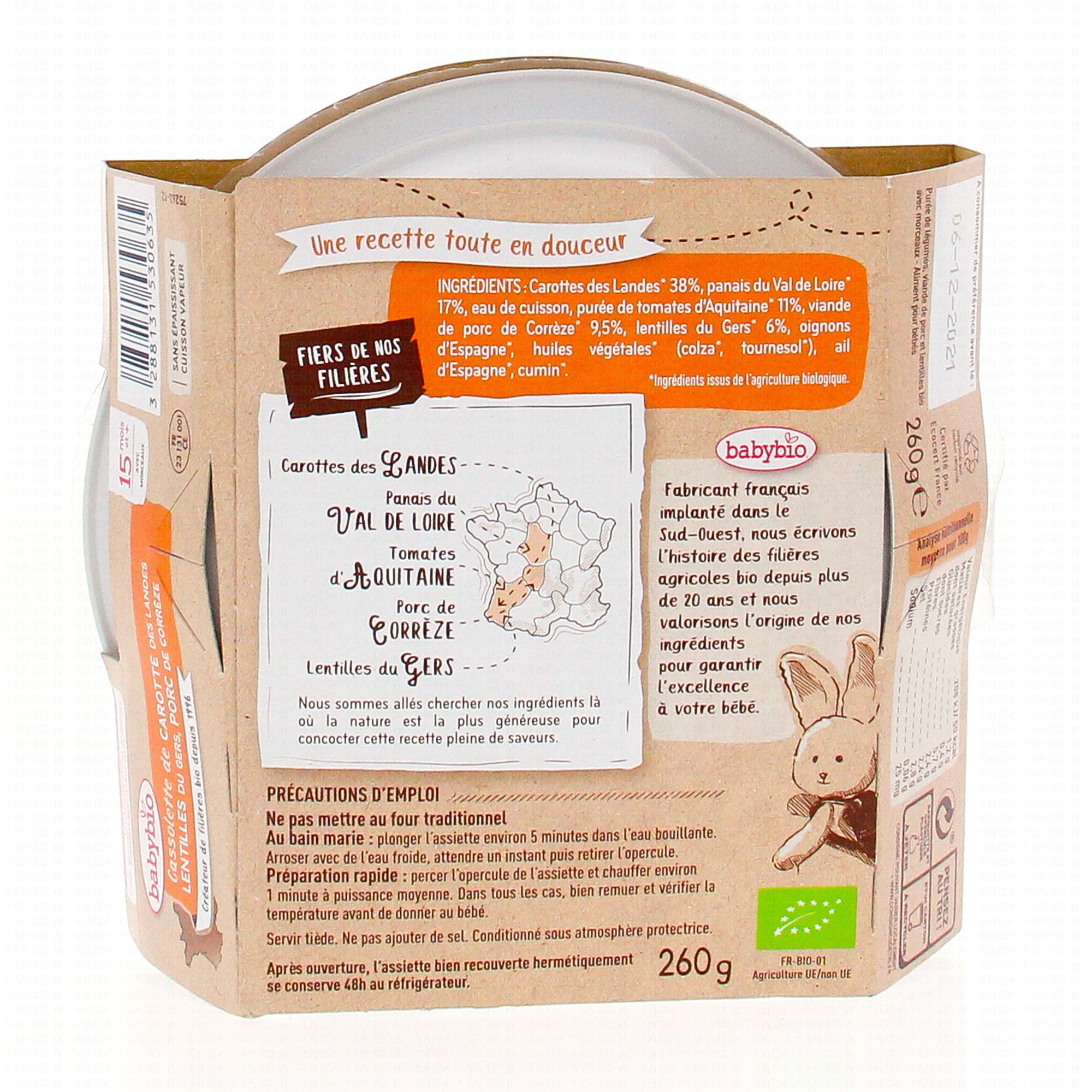 BABYBIO Repas du Midi - Plat carotte des Landes, lentilles du Gers, porc de Corrèze avec Cumin #skincare