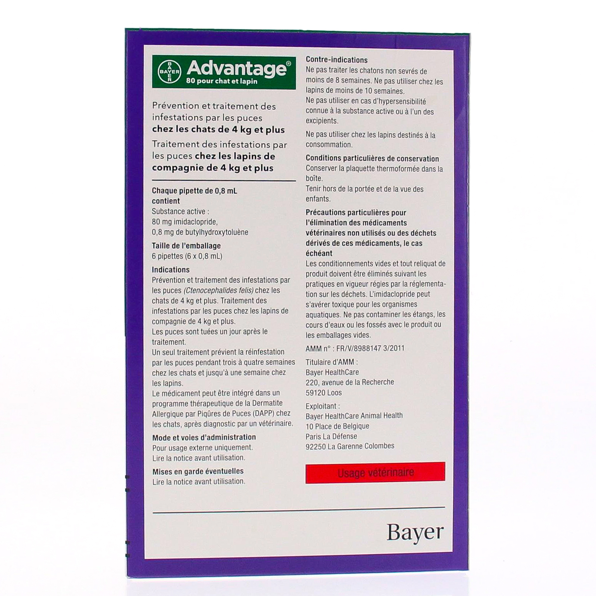 BAYER Advantage 80mg chat/lapin pipette 0.8ml x 6 #skincare