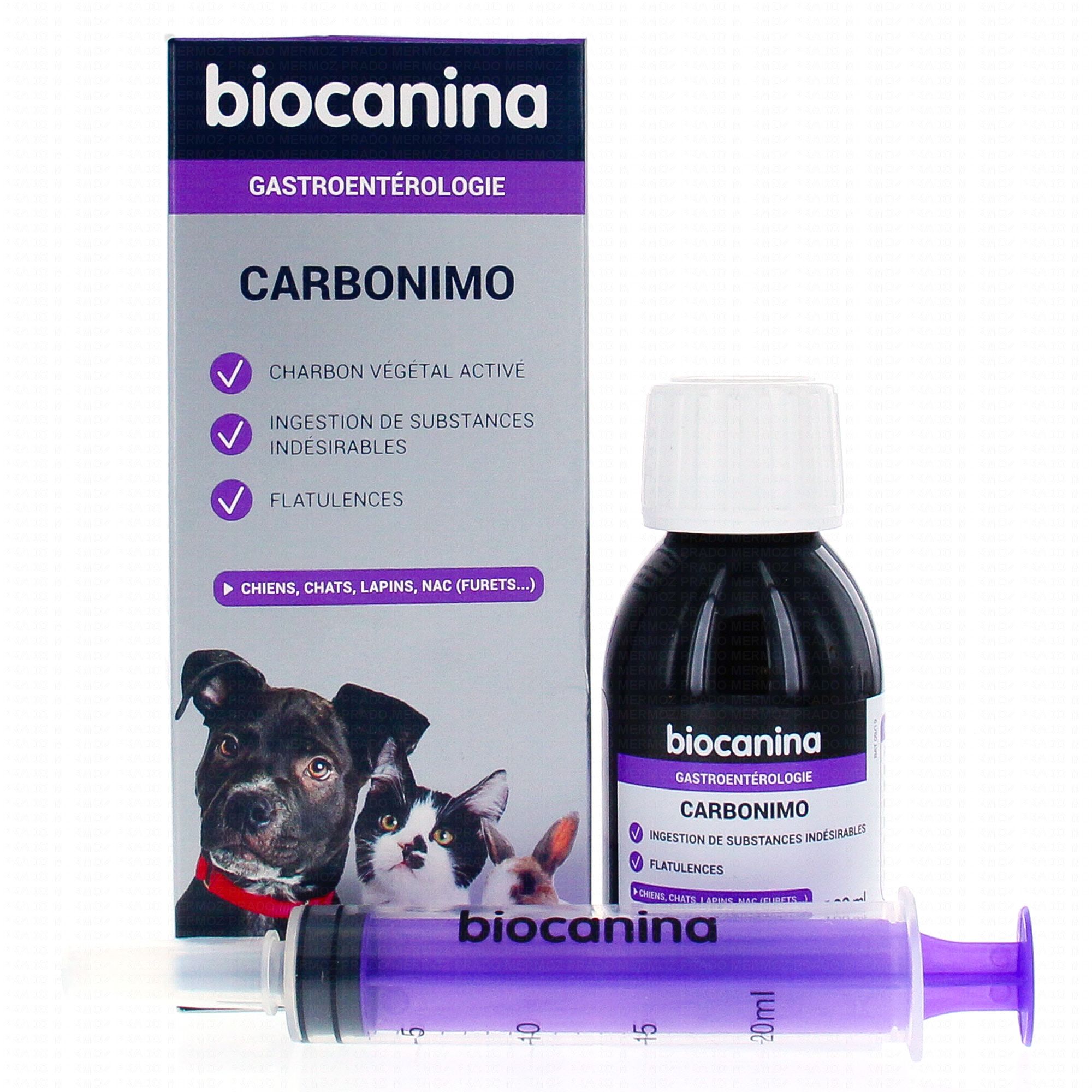 Formulé avec du charbon végétal activé, le Carbonimo est un complément alimentaire qui permet de soulager l'inconfort intestinal de votre animal. En cas d'indigestion de substances indésirable ou de flatulences, ce produit tapisse les parois digestive et réduit l'absorption de molécules potentiellement toxiques par l'organisme, qu'elles soient solides, liquides ou gazeuse.