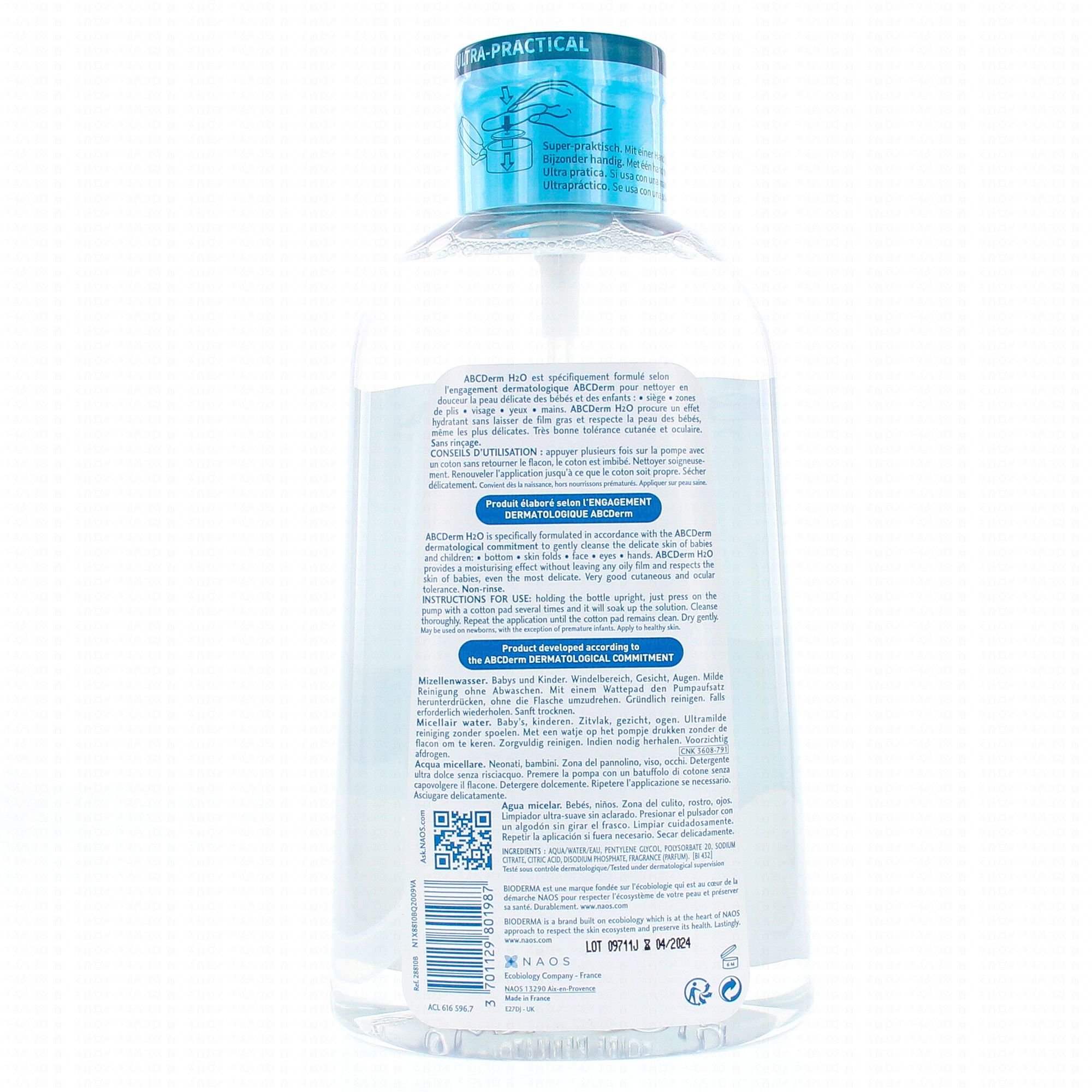 BIODERMA ABCDerm - H2O eau micellaire nettoyante bébé & enfant flacon pompe 1l #skincare