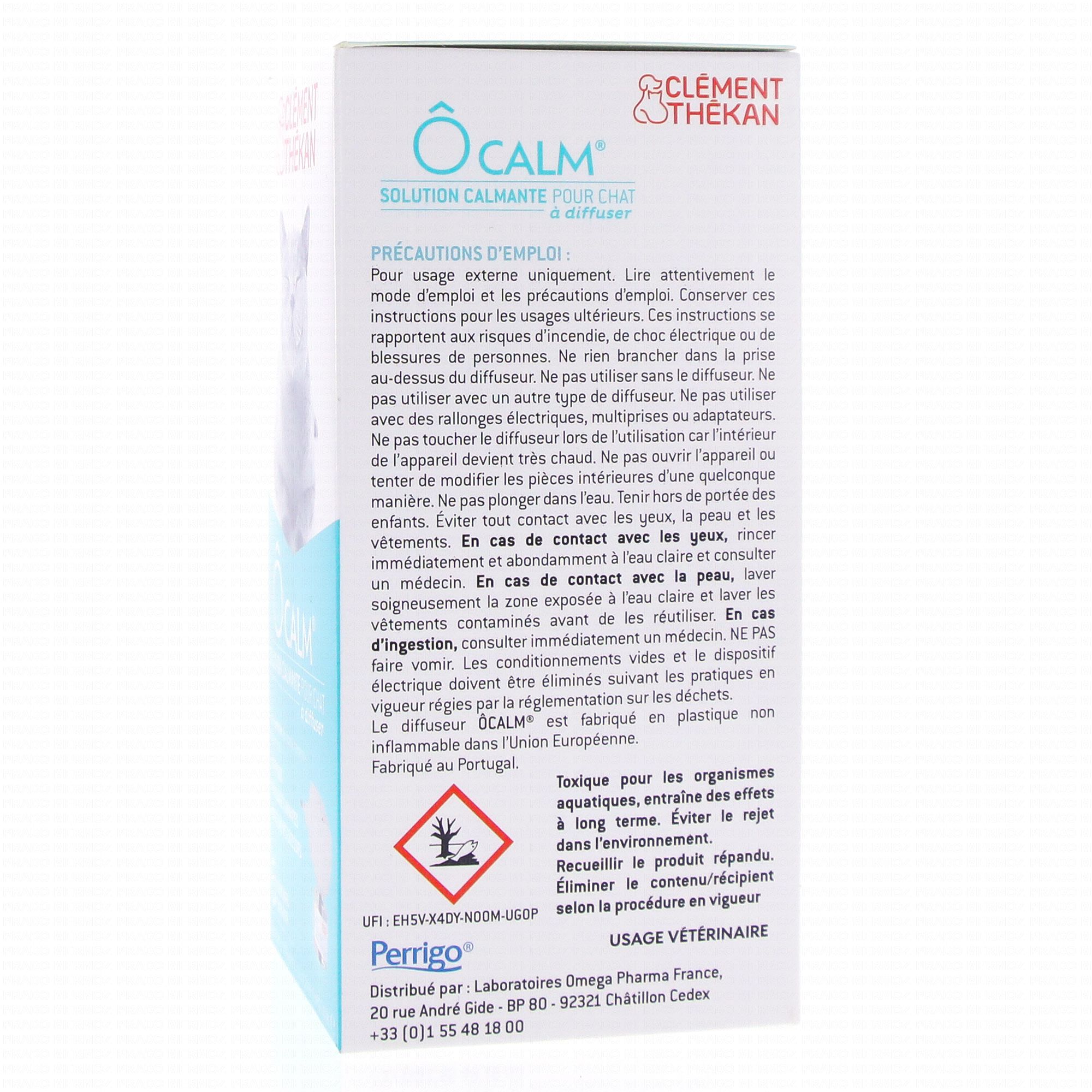 Lorsqu'un chat se sent en sécurité, il frotte sa tête contre les objets qui se trouvent dans son environnement, laissant un substance naturelle connue sous le nom de phéromone. La recharge Ô Calm de chez Clément Thékan va reproduire de façon synthétique cette phéromone afin de réduire les manifestations de stress chez votre chat.