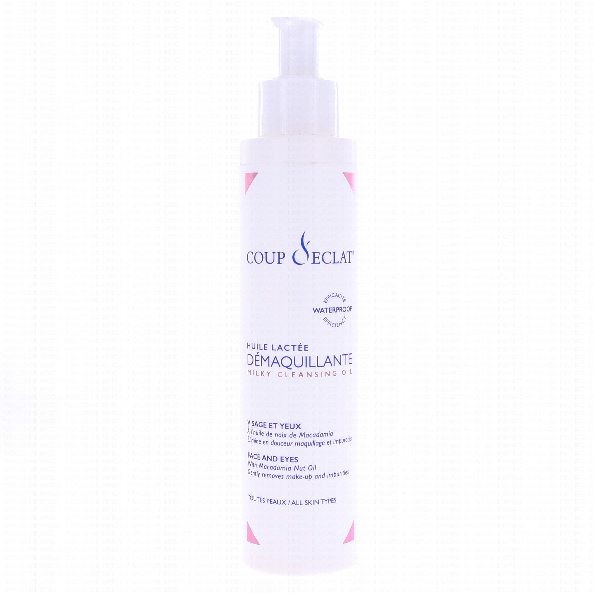 Coup d'Éclat Huile Lactée Démaquillante 200 ml est une huile formulée avec seulement 7 ingrédients, dont l'huile de noix de macadamia. Elle démaquille en douceur le visage et les yeux tout en protégeant le film hydrolipidique de la peau.