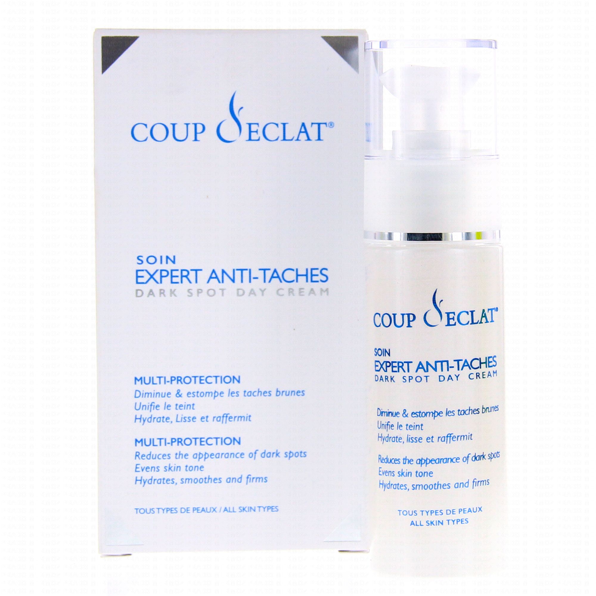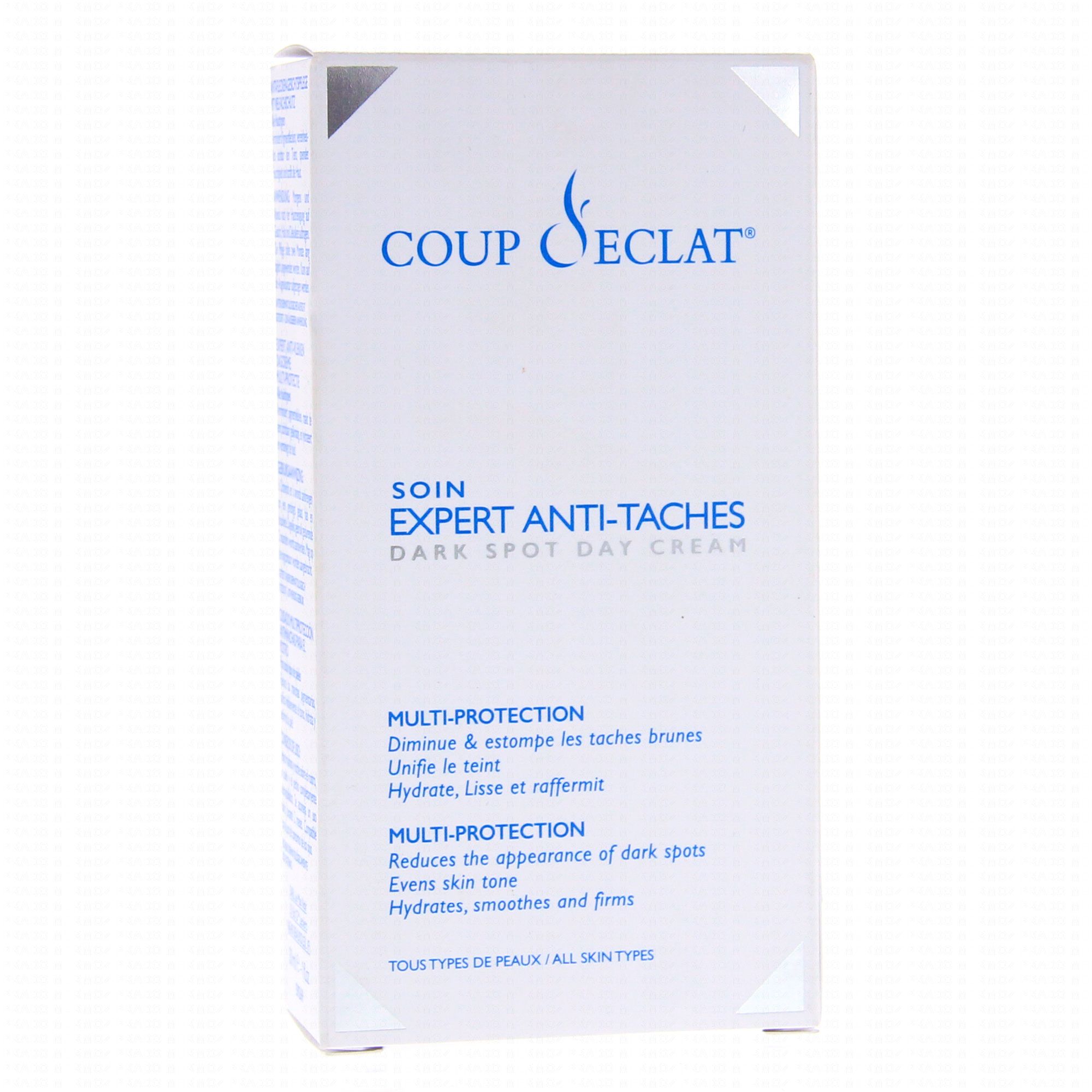 Coup d'Éclat Soin Expert Anti-Taches est une émulsion invisible qui forme un voile protecteur pour corriger l'apparence des taches brunes, participer au maintien d'un teint uniforme et améliorer la fermeté de la peau.