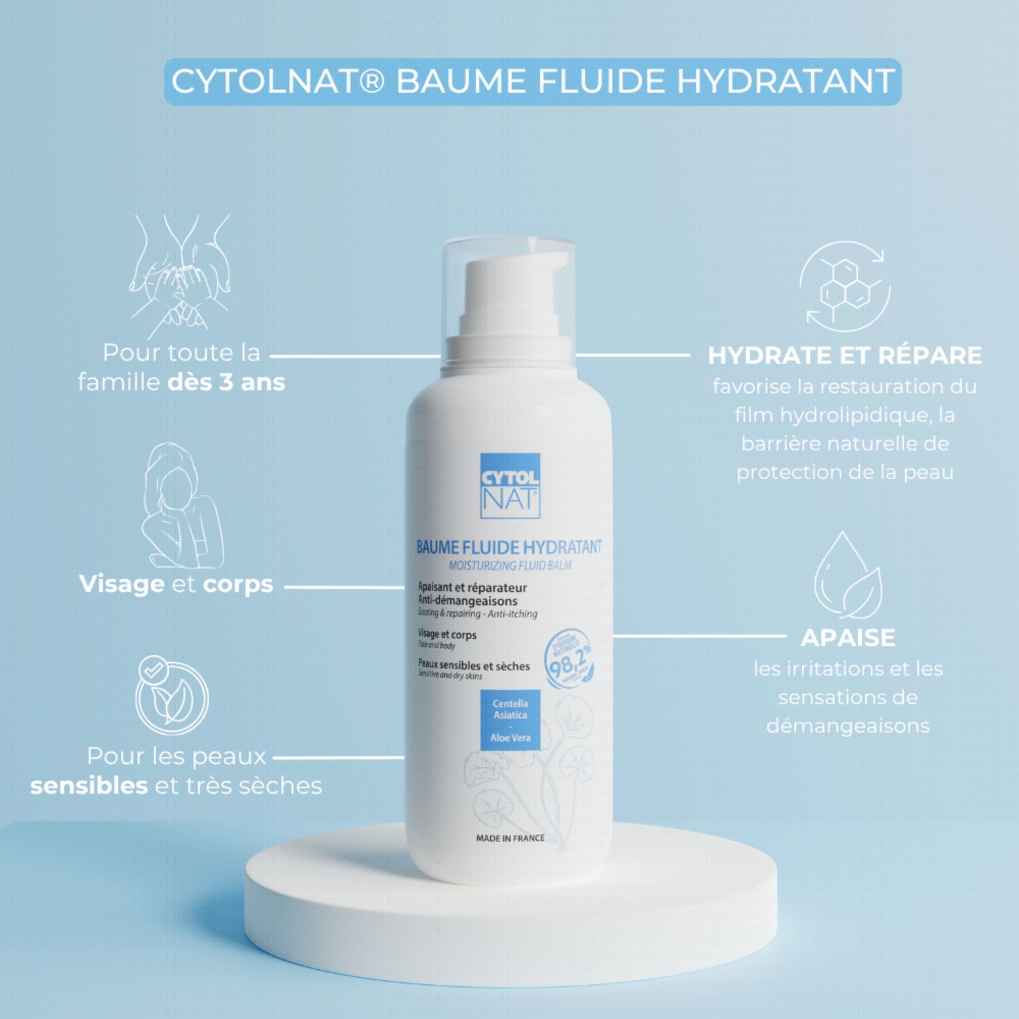 Cytolnat Baume Fluide Hydratant est un soin quotidien pour les peaux sensibles et très sèches de toute la famille dès 3 ans.