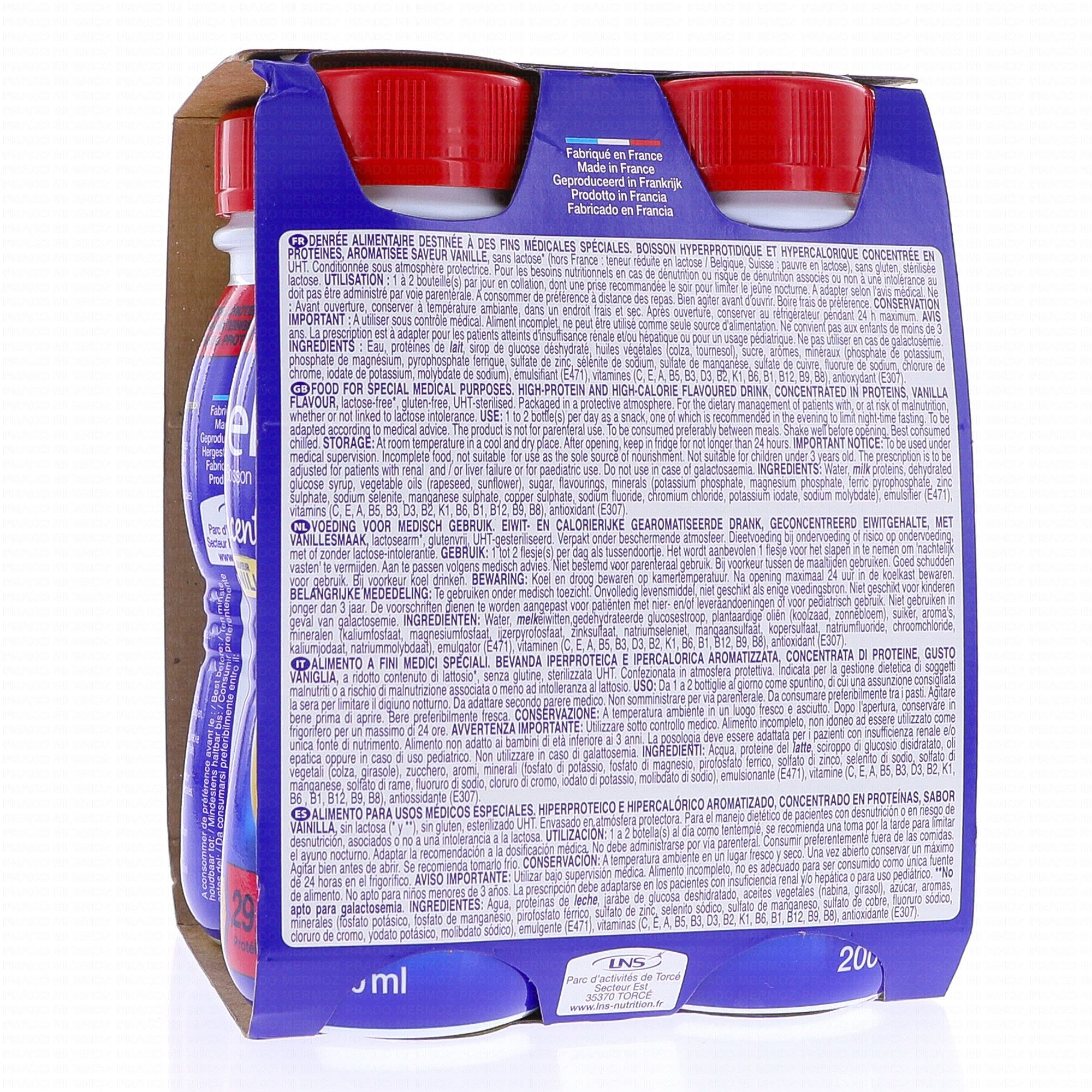 DELICAL Concentré Boisson HP/HC Vanille 4x200ml est un complément alimentaire destiné aux personnes souffrants de dénutrition ou en voie de dénutrition. Chaque bouteille apporte 29 grammes de protéines et 452 kcal. Cette boisson ne contient pas de lactose.