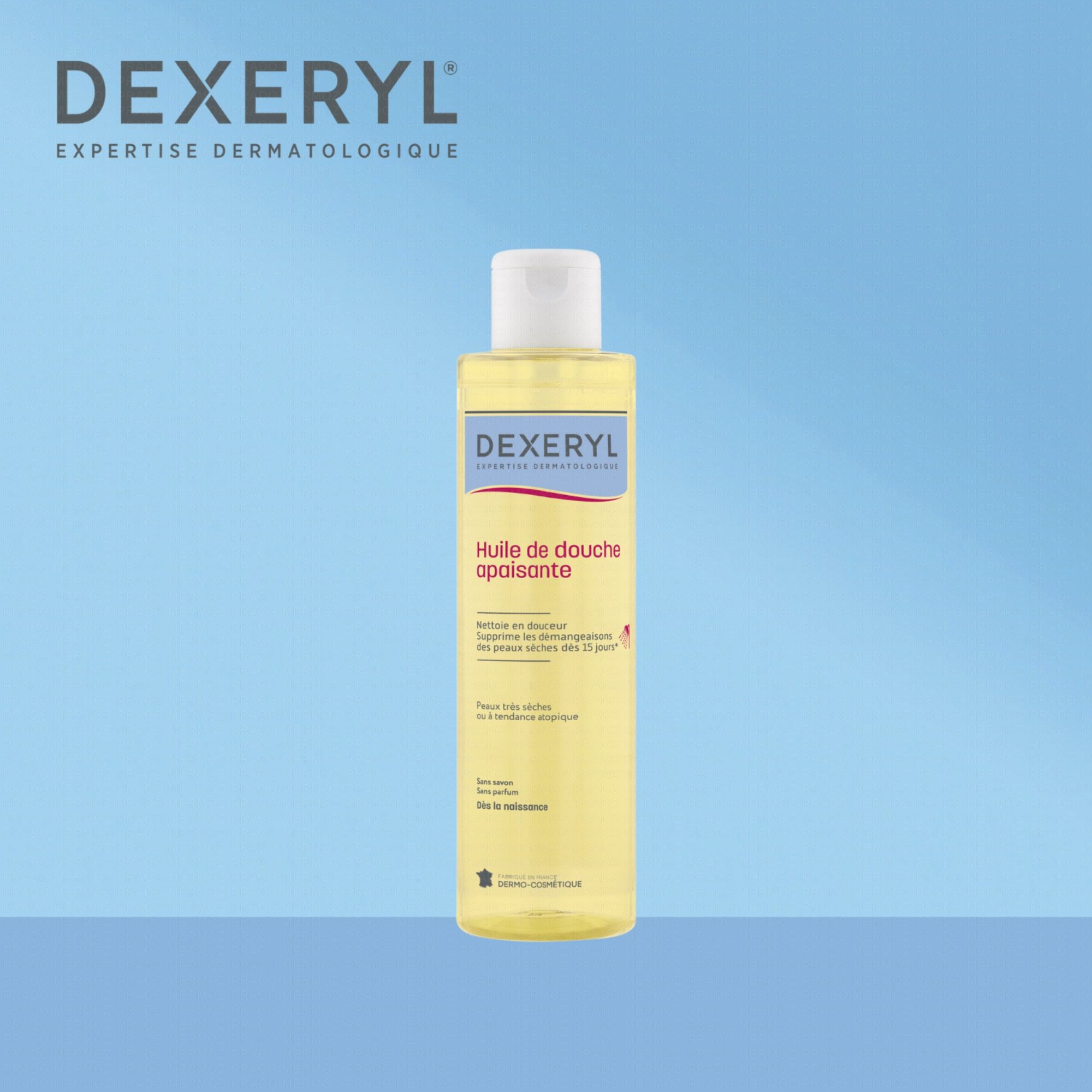 Un produit d'hygiène mal choisi peut accentuer un état de sécheresse cutanée. Il est recommandé d'éviter les savons parfois trop abrasifs, et de plutôt conseiller des textures nourrissantes comme les huiles, ayant une formule à base d'émollient, non irritante, hypoallergénique et sans parfum. Avec Dexeryl Essentiel Huile de douche apaisante, le soin des peaux très sèches commence dès la douche. Spécifiquement conçue pour les peaux très sèches ou à tendance atopique, l'huile de douche apaisante nettoie en douceur et relipide la peau, tout en préservant la barrière cutanée.