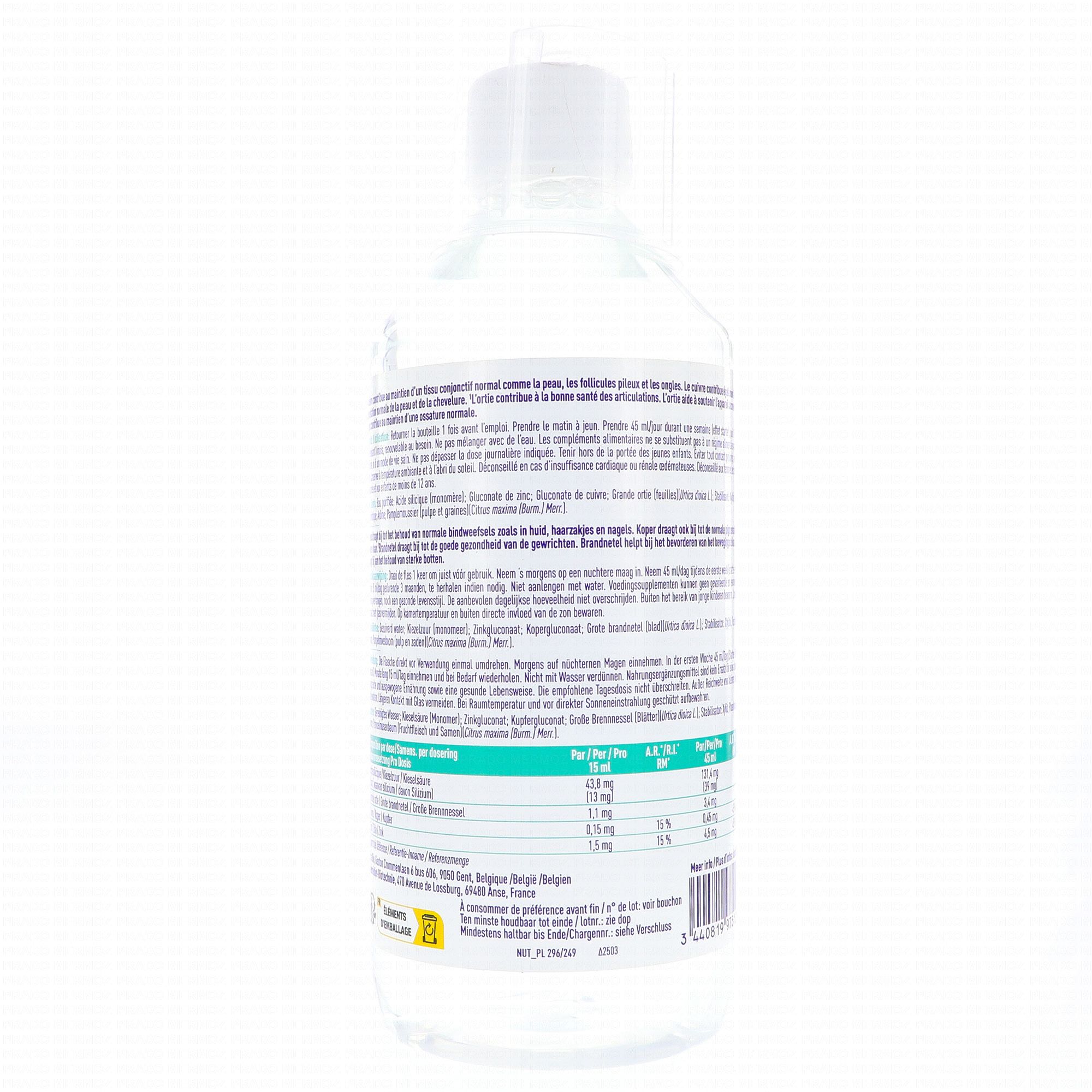 Eau purifiée, acide silicique (monomère), grande ortie (feuilles) (Urtica dioica), gluconate de cuivre, arôme, stabilisant : acide phosphorique pamplemoussier (graines)/ (Citrus maxima Burm.) Merr.)