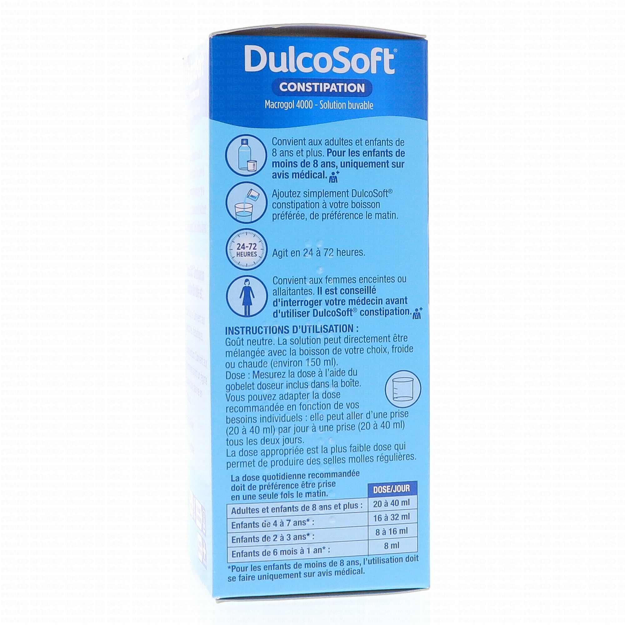 À base de macrogol, DulcoSoft est un dispositif médical permettant de soulager la constipation tout en douceur ainsi que de ramollir les selles dures.