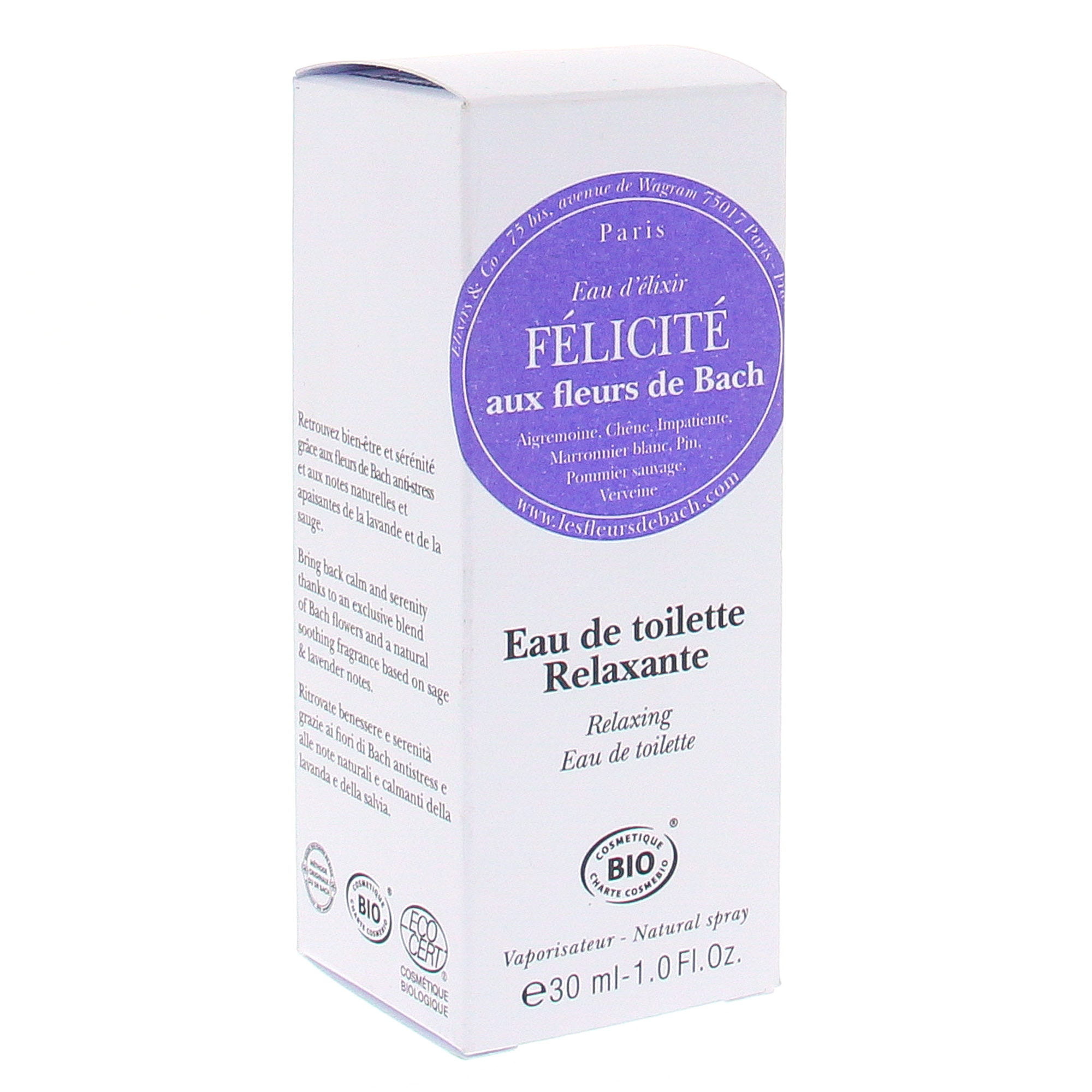 Formulé à partir de Fleurs de Bach anti-stress allié à la sauge et à la lavande, cette eau de toilette vous aide à retrouver calme et quiétude.
