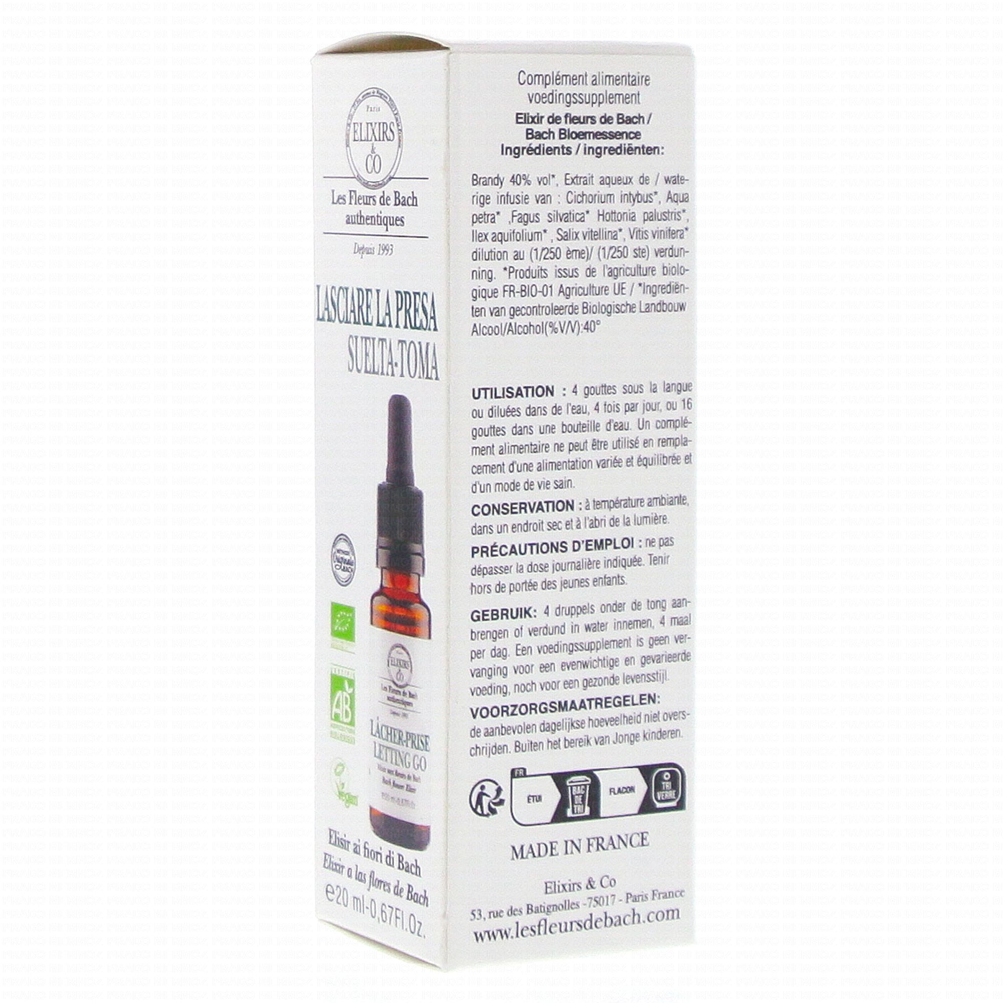ELIXIRS & CO Les fleurs de bach Lacher Prise Flacon 20ml contient les éléments suivants :