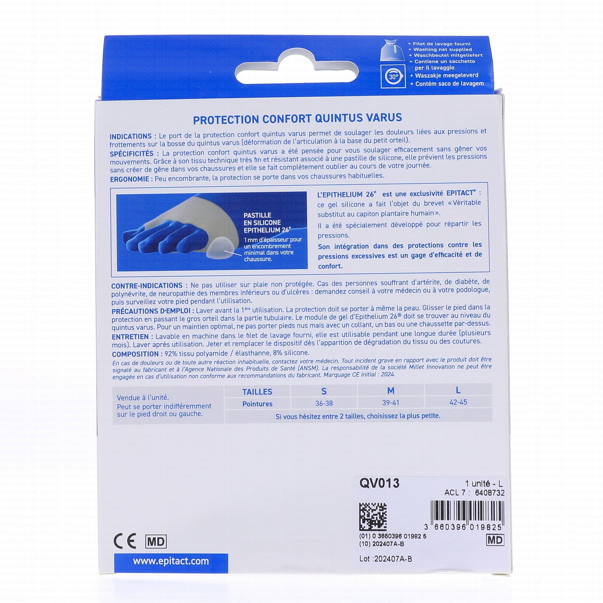 Protection base du petit orteil pour soulager la douleur sur la déformation du quintus varus. Permet d'éliminer les frottements.