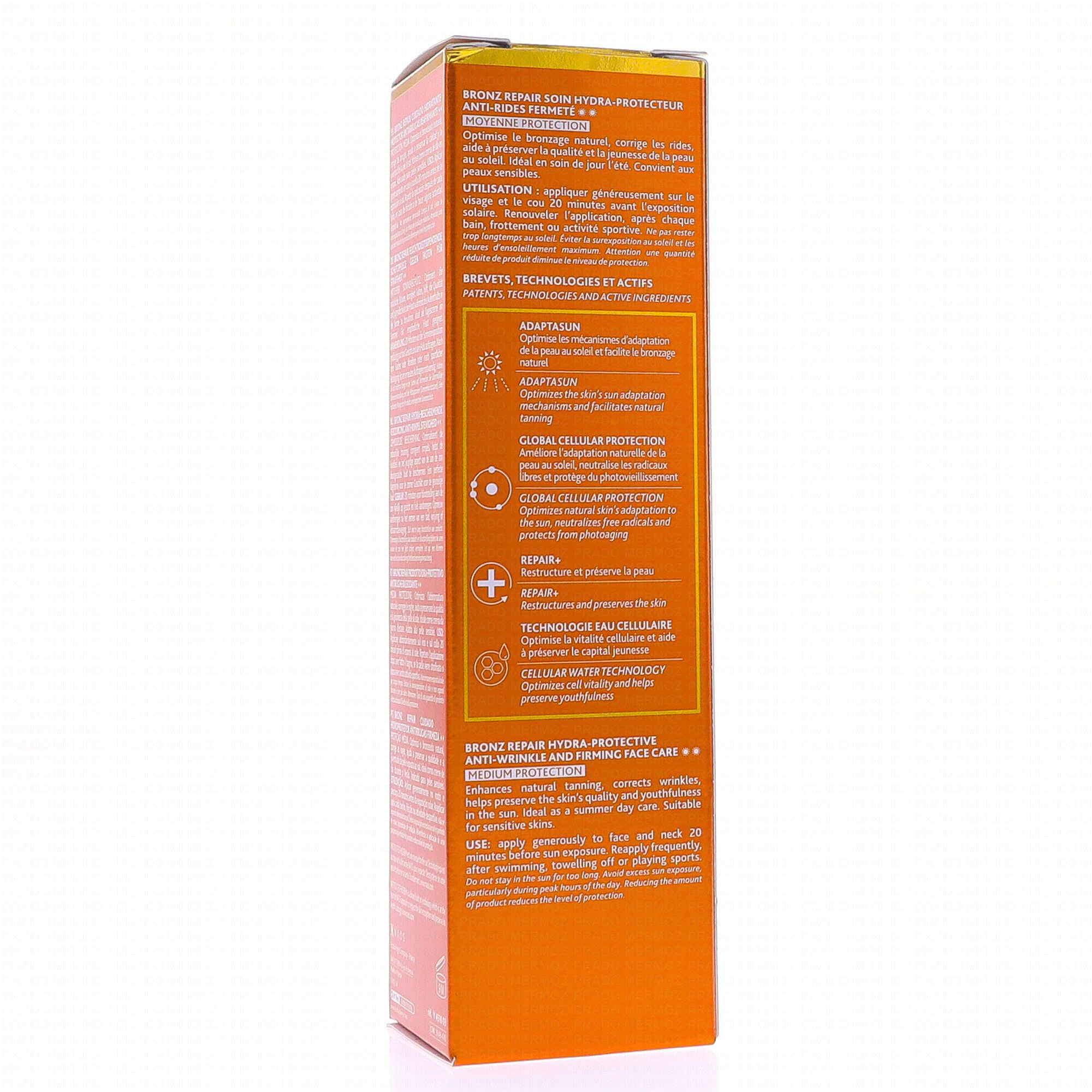 Pour une utilisation optimale du soin protecteur anti-rides fermeté BRONZ REPAIR Soleil Modéré d'Institut Esthederm, appliquez généreusement le produit sur le visage, le cou et le décolleté 20 minutes avant l'exposition solaire.