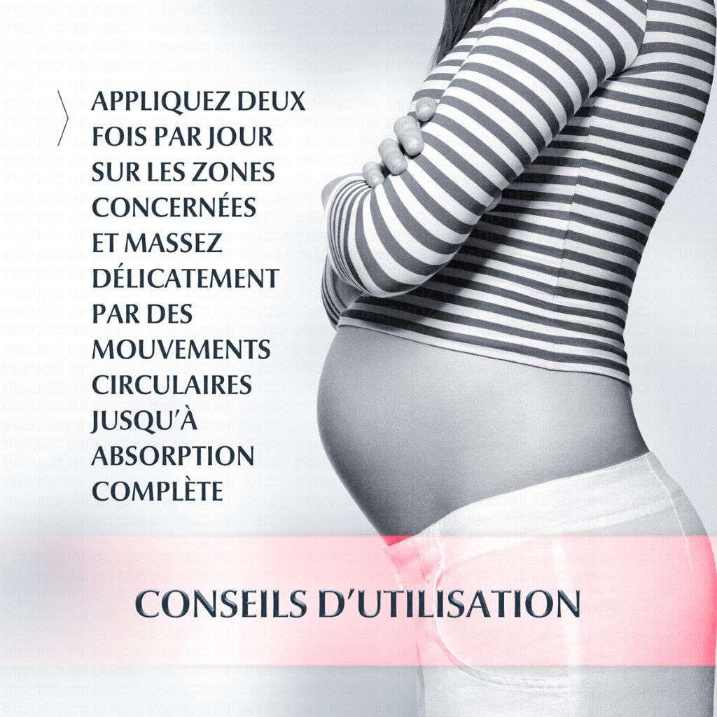 Soin corporel. Prévention et traitement des vergetures. Grossesse, variations de poids. Peaux sensibles.