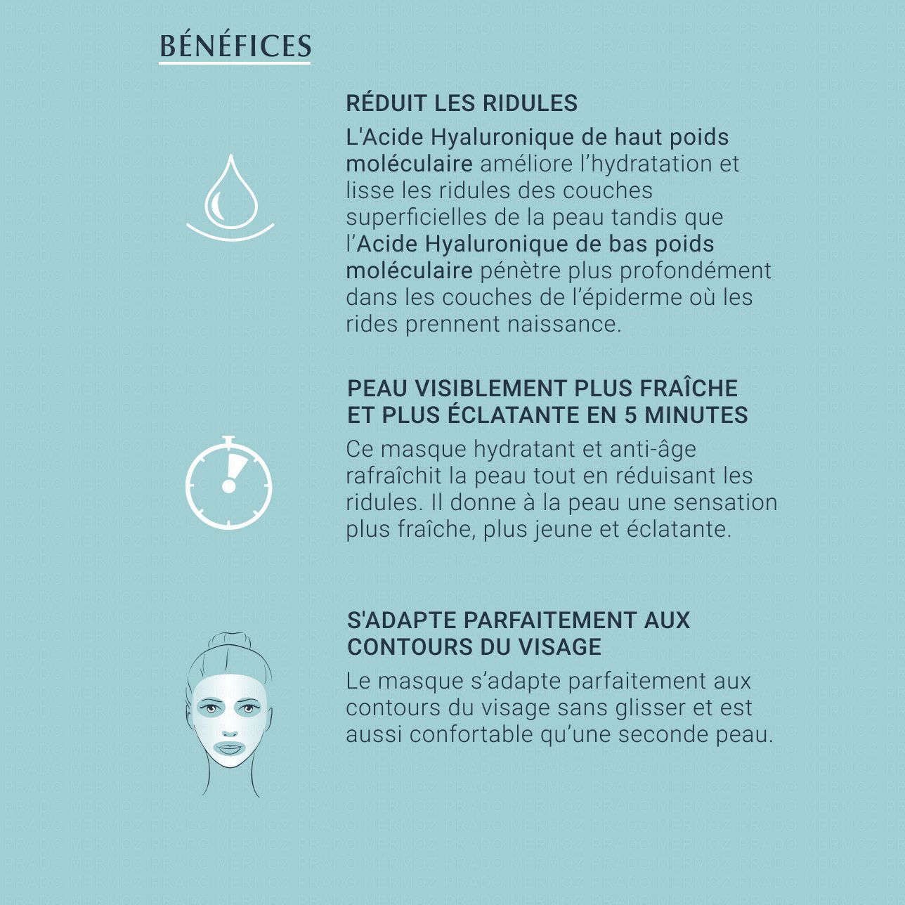 Masque à l'acide hyaluronique. Lisse, repulpe et hydrate