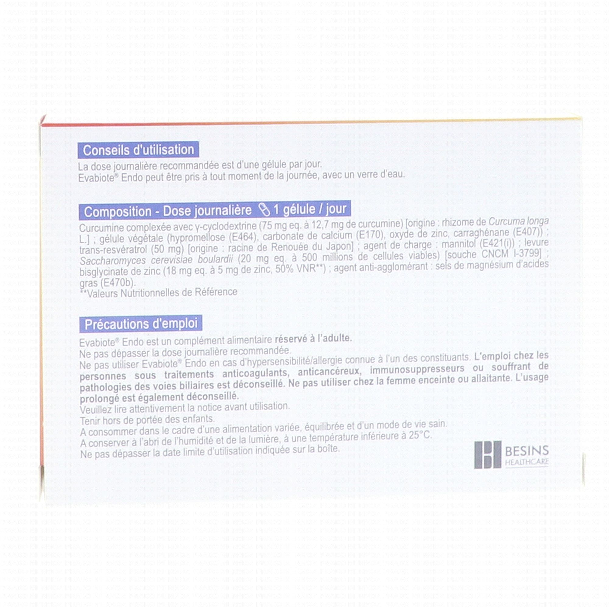 EVABIOTE Endo x30 Gélules contient les éléments suivants :