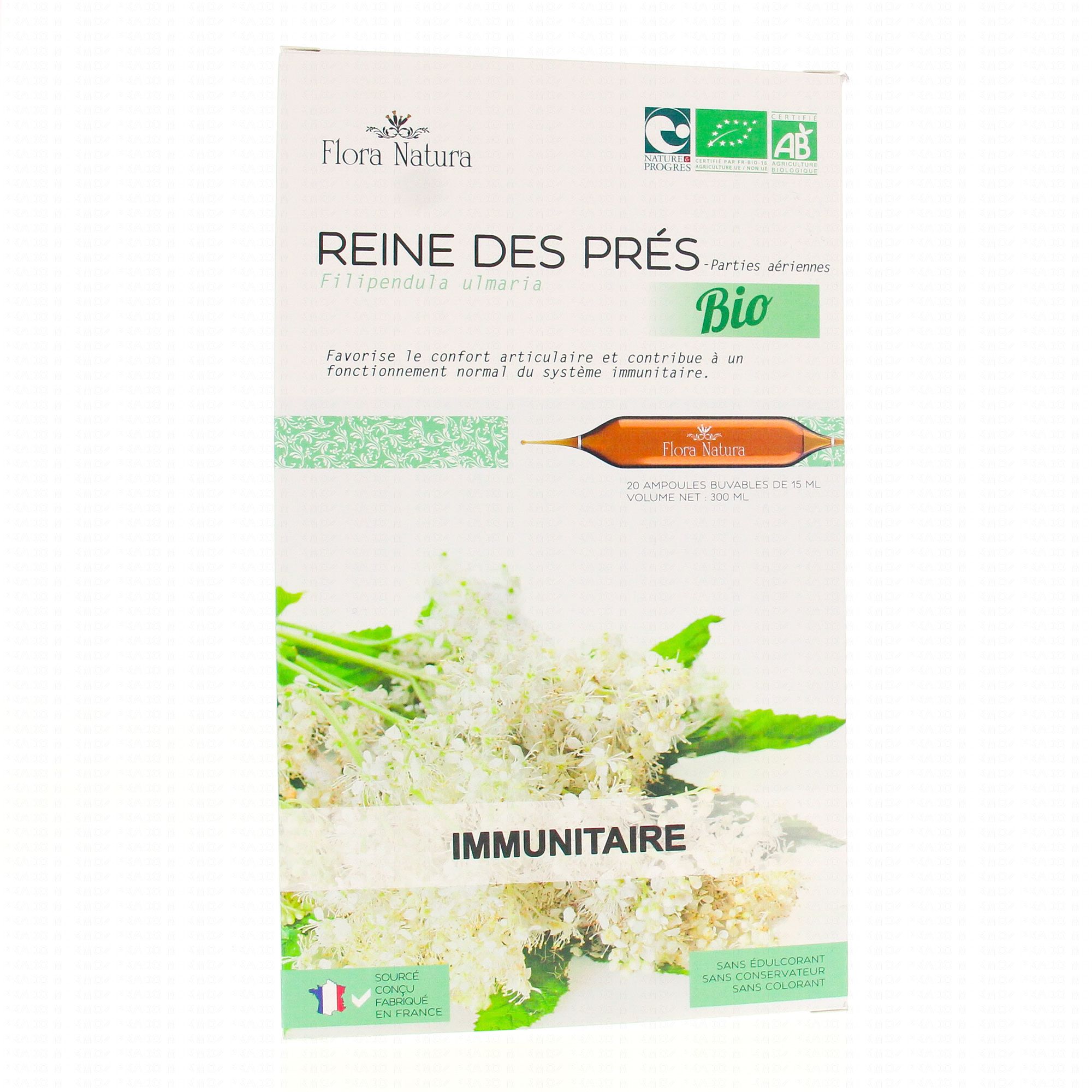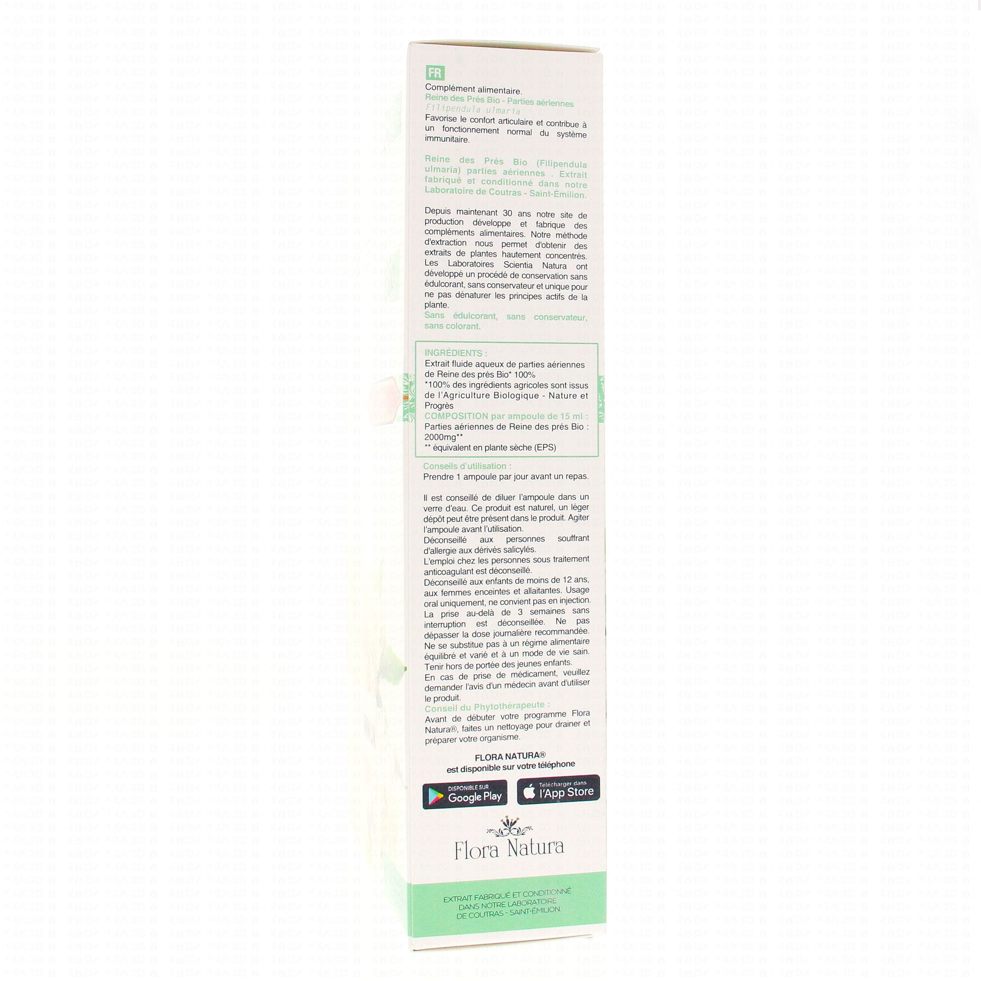FLORA NATURA Reine des Prés Bio 20 Ampoules de 15ml contient les éléments suivants :