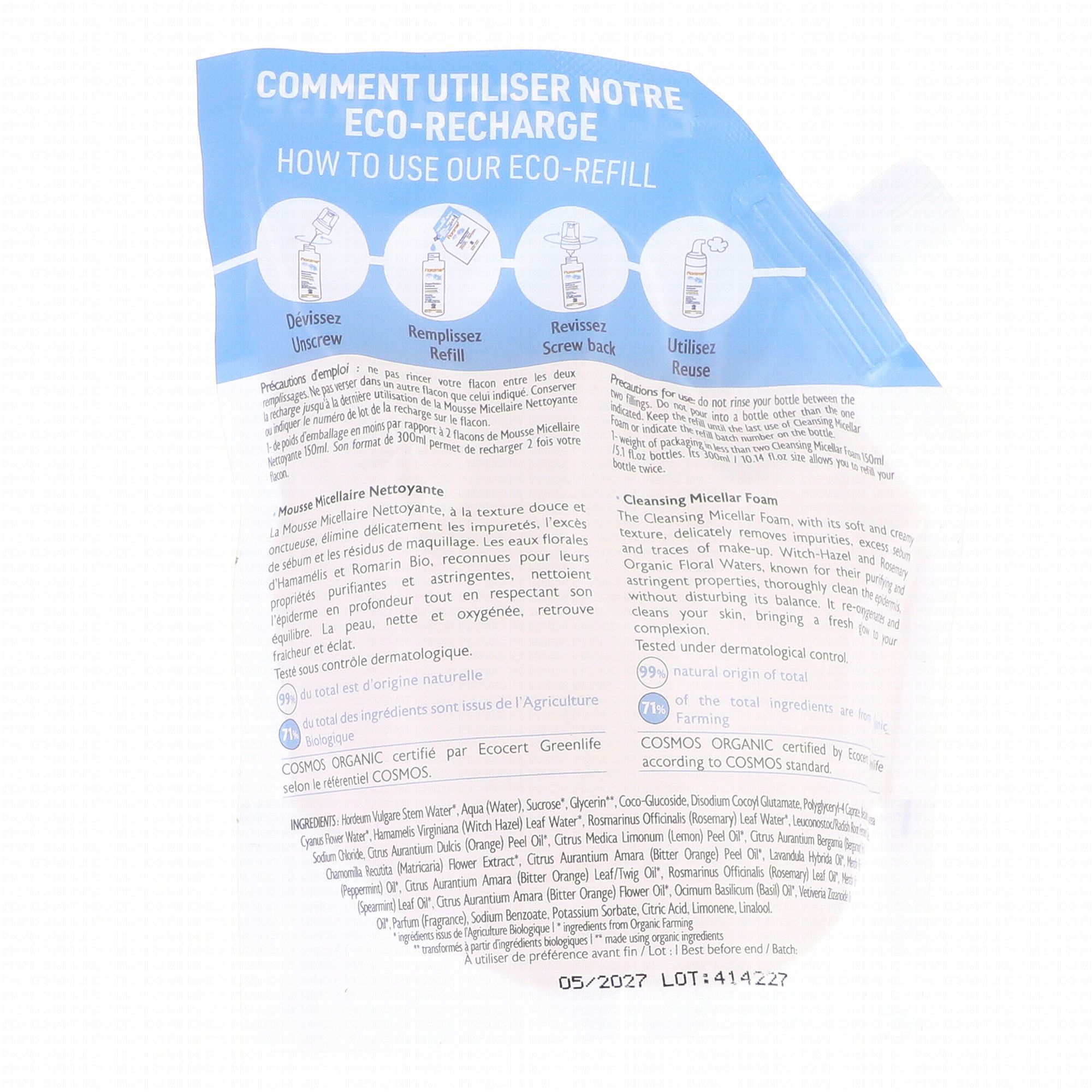 FLORAME Eaux florales bio - Mousse micellaire nettoyante bio eco recharge 300ml #skincare