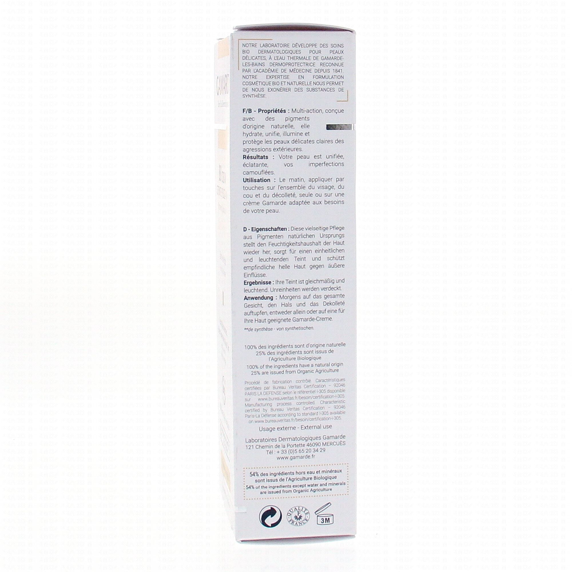 GAMARDE BB Cream bio soin teinté 4 en 1 peaux claires tube 40g #skincare