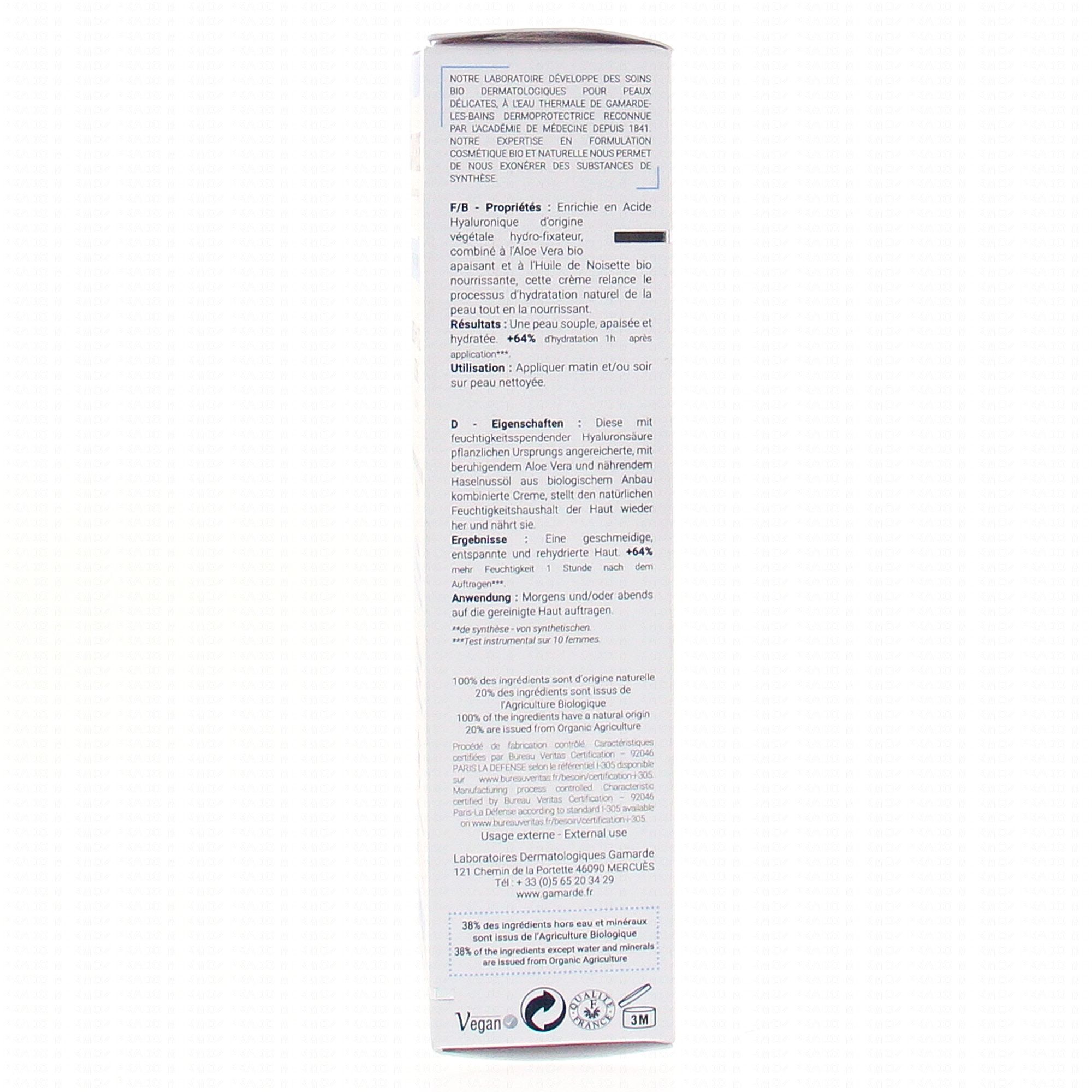 GAMARDE Hydratation active crème hydratante riche bio tube 40g #skincare