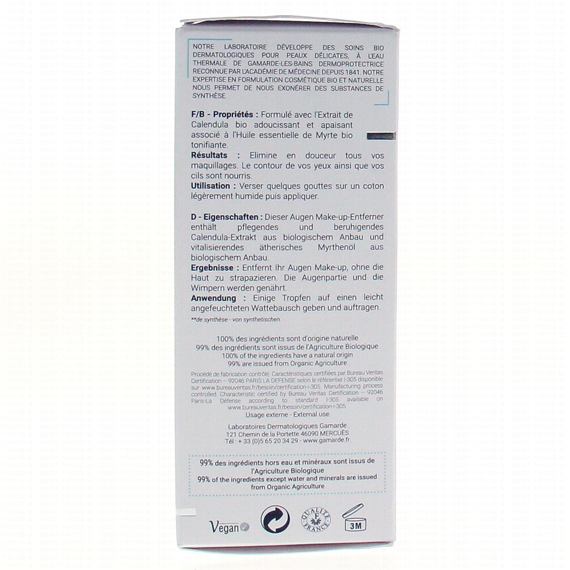 GAMARDE Hygiène douceur - Démaquillant douceur yeux bio flacon 30ml #skincare