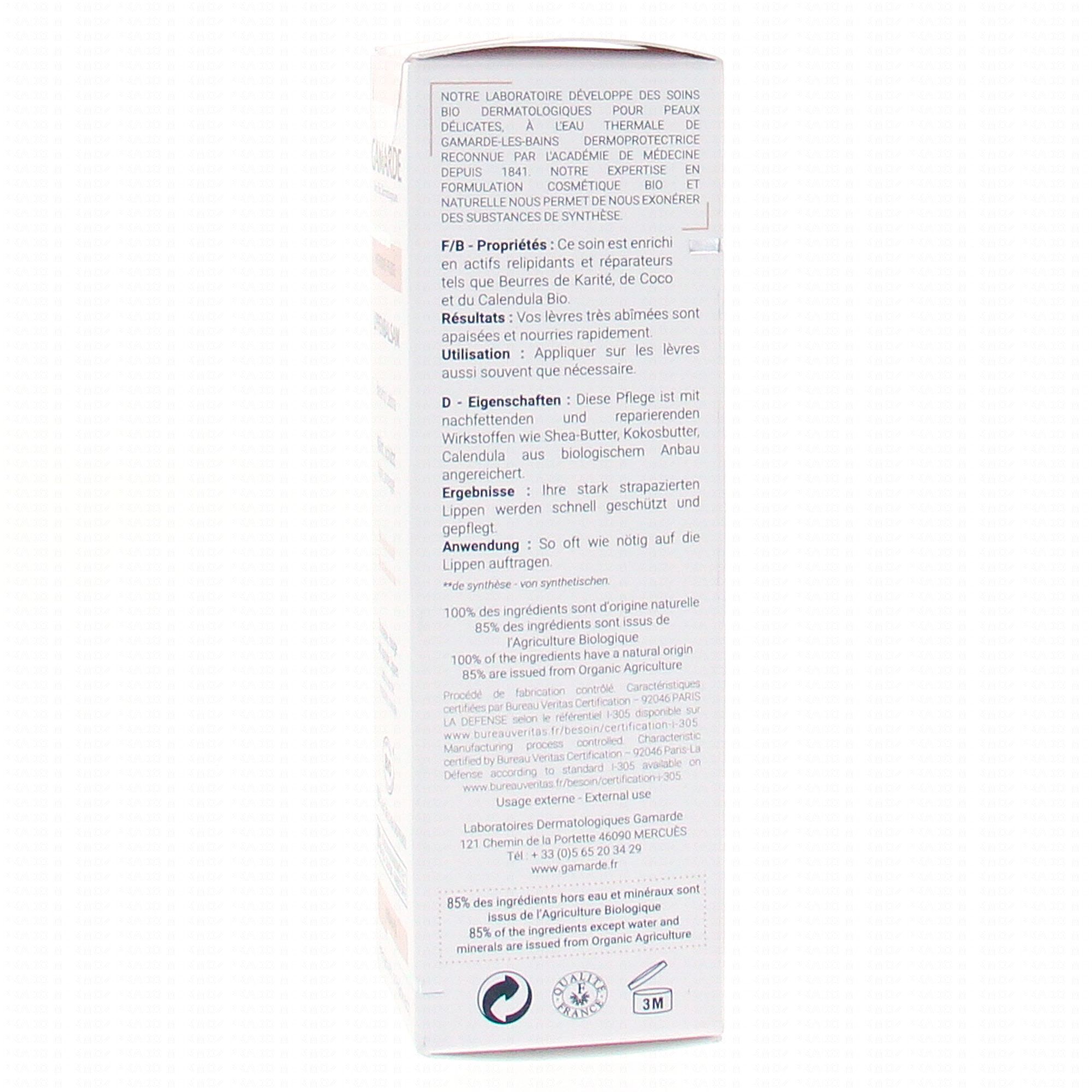 GAMARDE Nutrition intense baume à lèvres bio tube 10ml #skincare