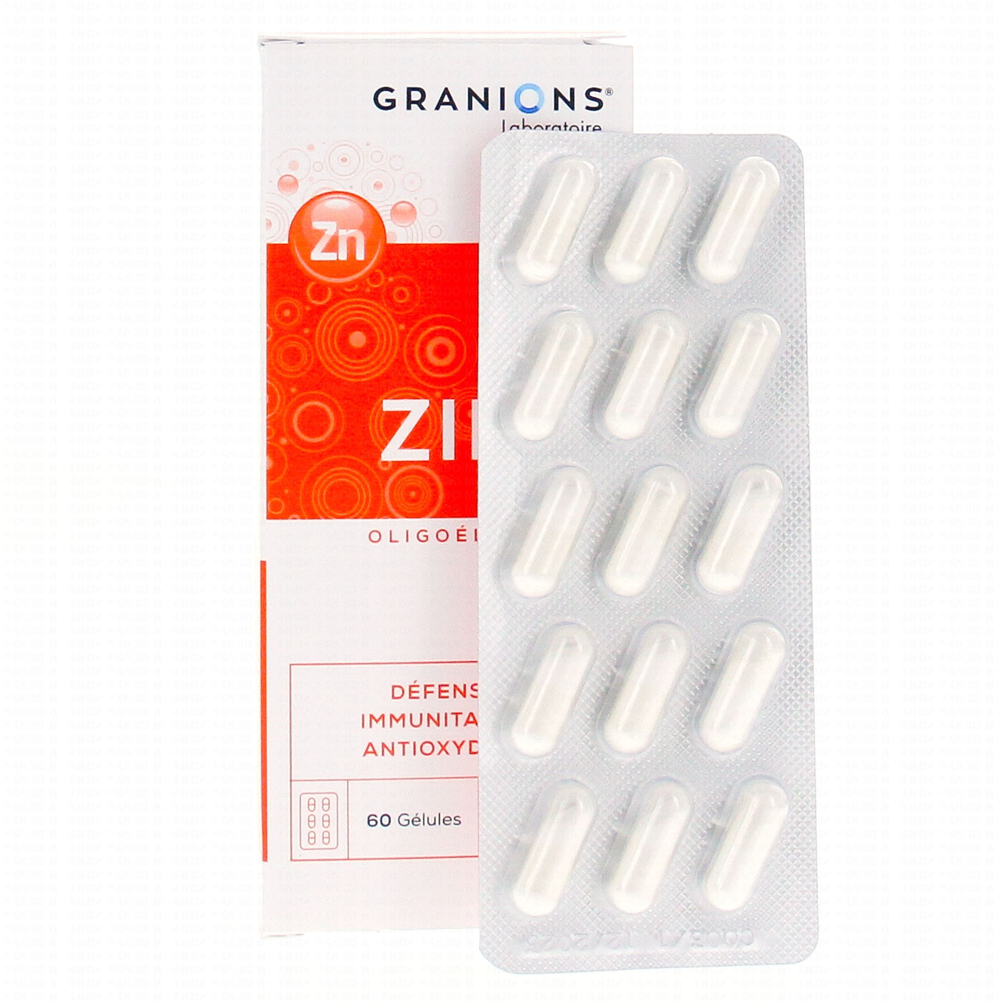GRANIONS Zinc 15mg Oligoéléments 60 gélules contient les éléments suivants :