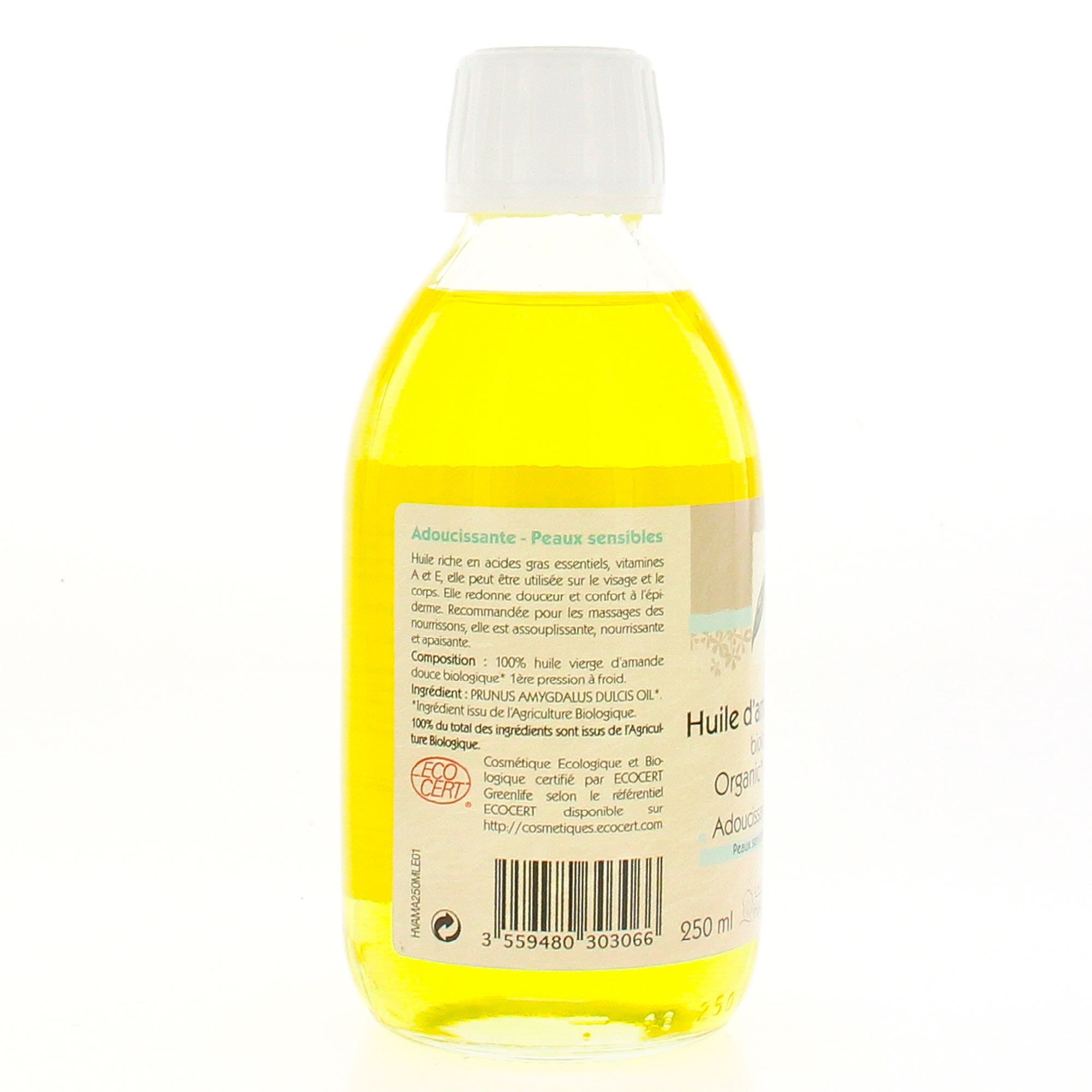 100% huile vierge d'amande douce biologique. 1ere pression à froid.