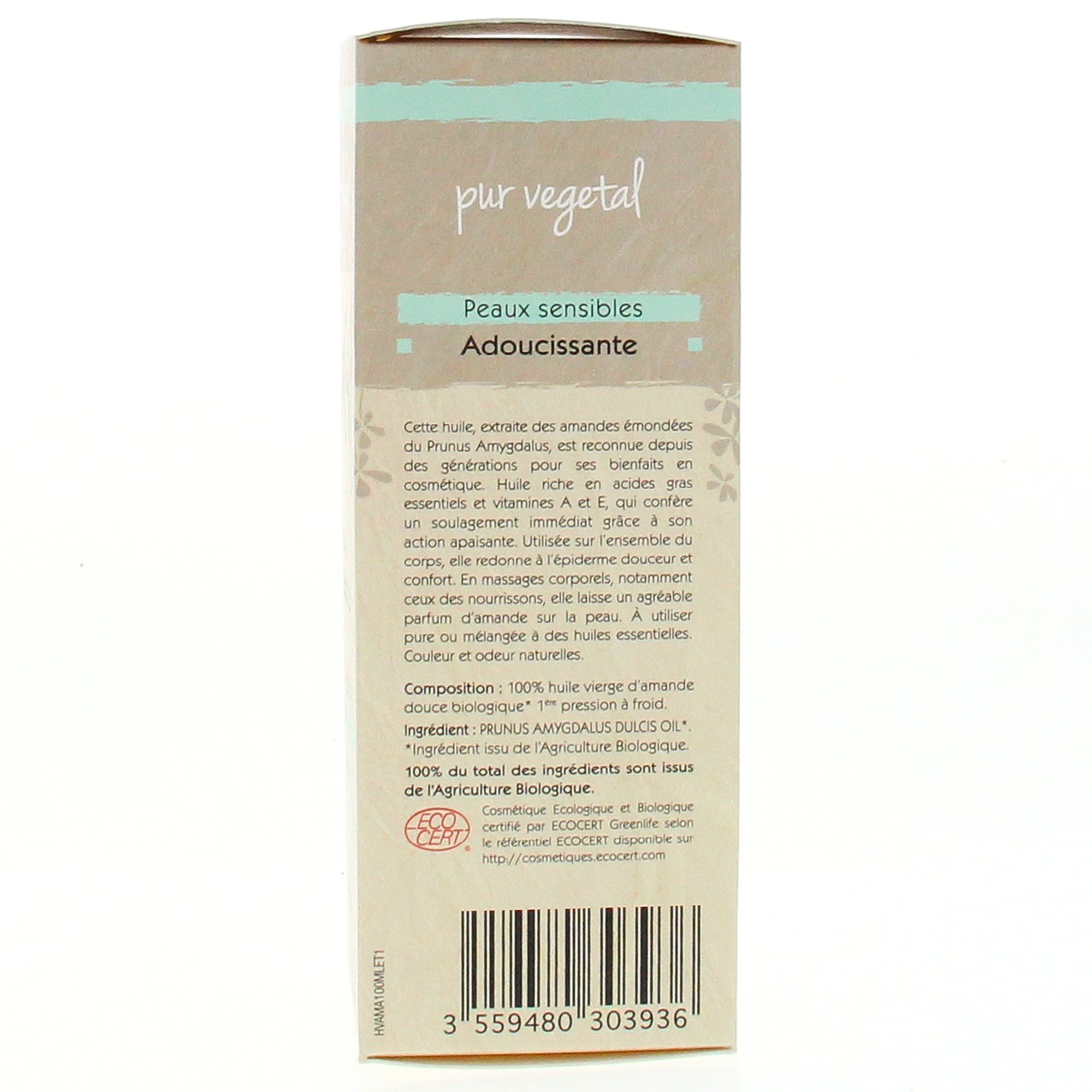 100% huile vierge d'amande douce biologique. 1ere pression à froid.