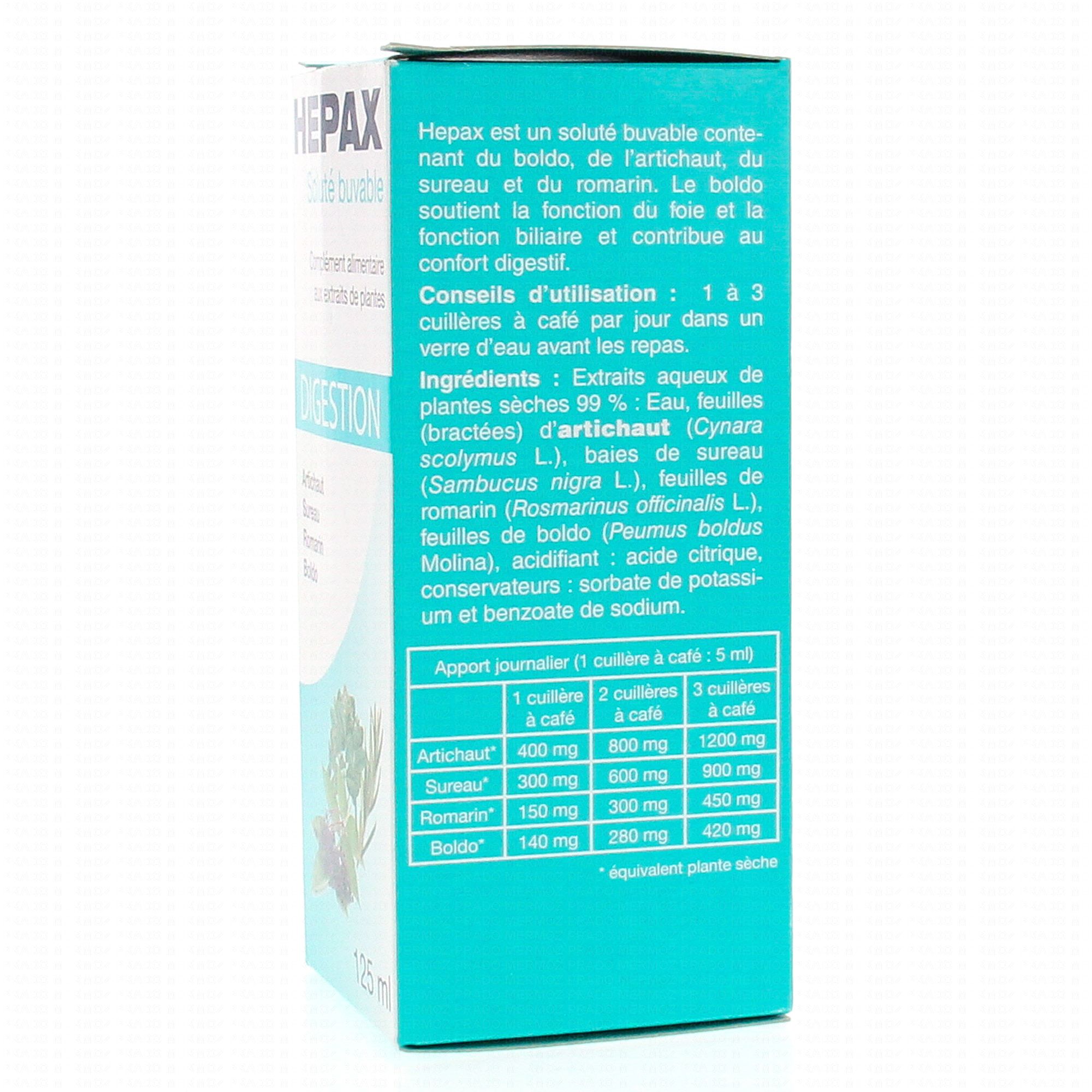 HEPAX soluté buvable Flacon 125mL contient les éléments suivants :