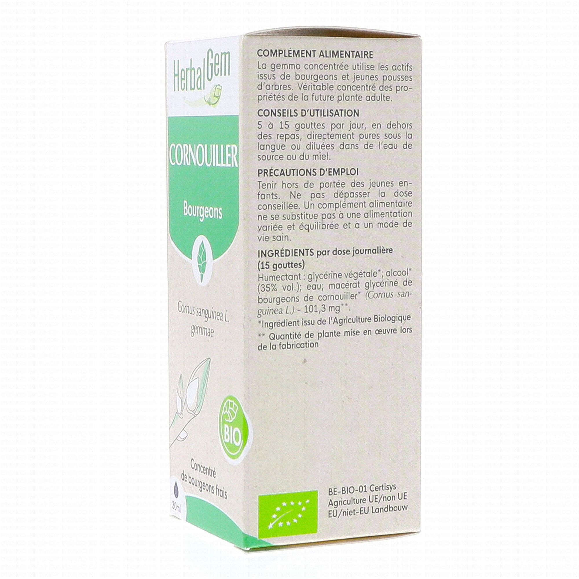 HERBALGEM Concentré de bourgeons frais - Cornouiller Bio 30ml contient les éléments suivants :