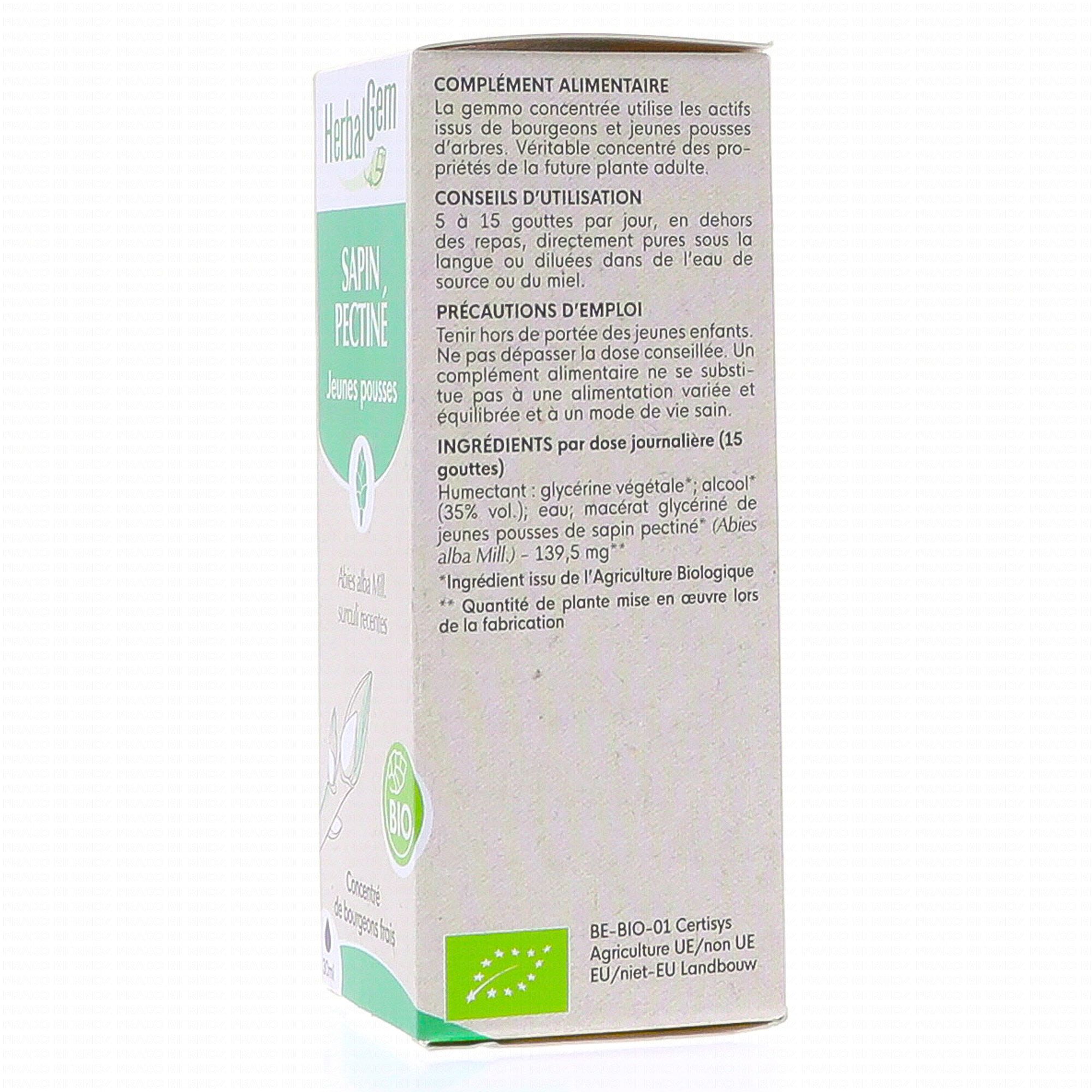 HERBALGEM Concentré de bourgeons frais - Sapin pectiné jeunes pousses bio 30ml contient les éléments suivants :