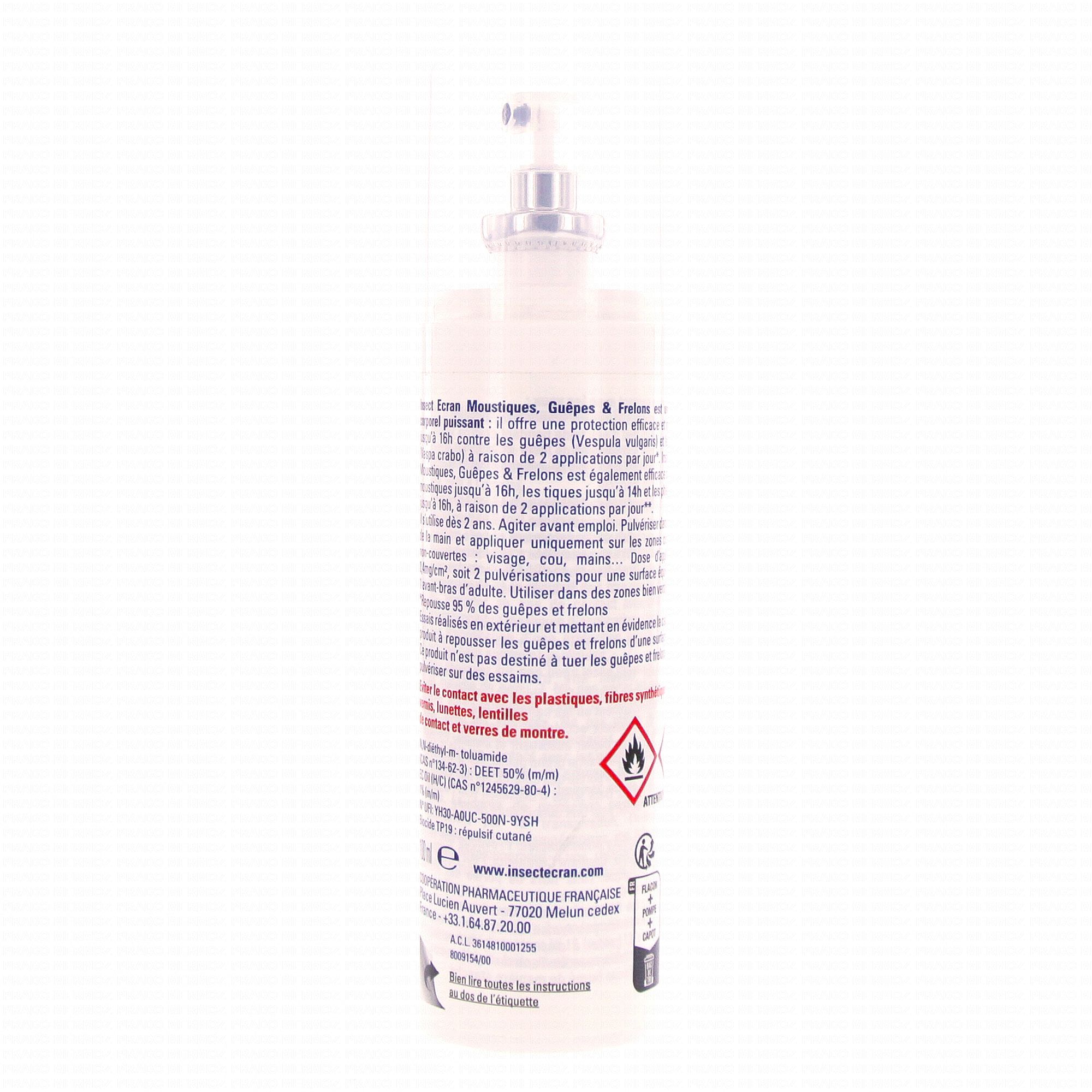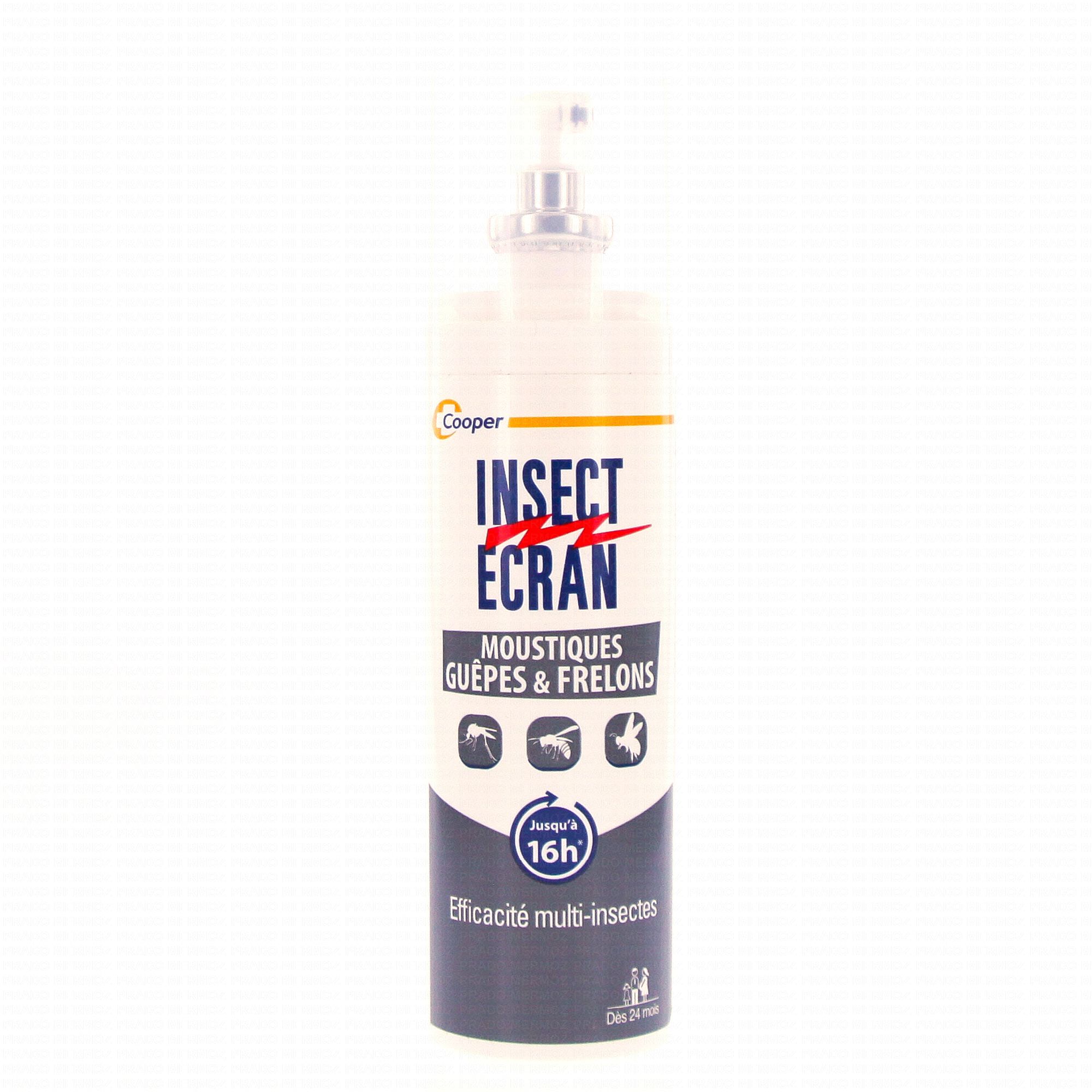 Insect Ecran Moustiques, Guêpes et Frelons est un répulsif qui s'utilise sur la peau et qui permet de repousser les moustiques, les guêpes et les frelons. Deux applications seulement suffisent pour procurer 16 heures de protection ! Par ailleurs, il fonctionne aussi contre les tiques et les phlébotomes.
