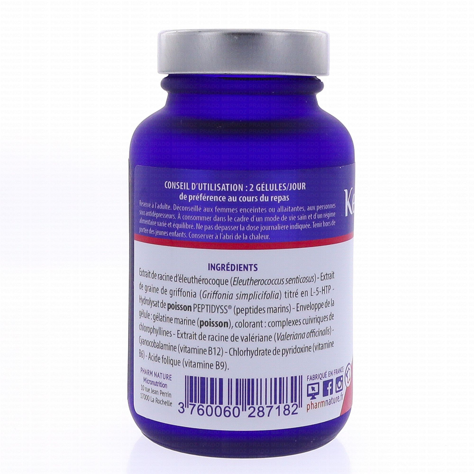 L'éleuthérocoque est une plante adaptogène et joue un rôle dans la relaxation. Le griffonia contribue à améliorer l'activité cérébrale. La valériane joue un rôle dans la relaxation et dans le bien-être physique et mental. Les vitamines B6, B9 et B12 contribuent à réduire la fatigue ainsi qu'à des fonctions psychologiques normales.